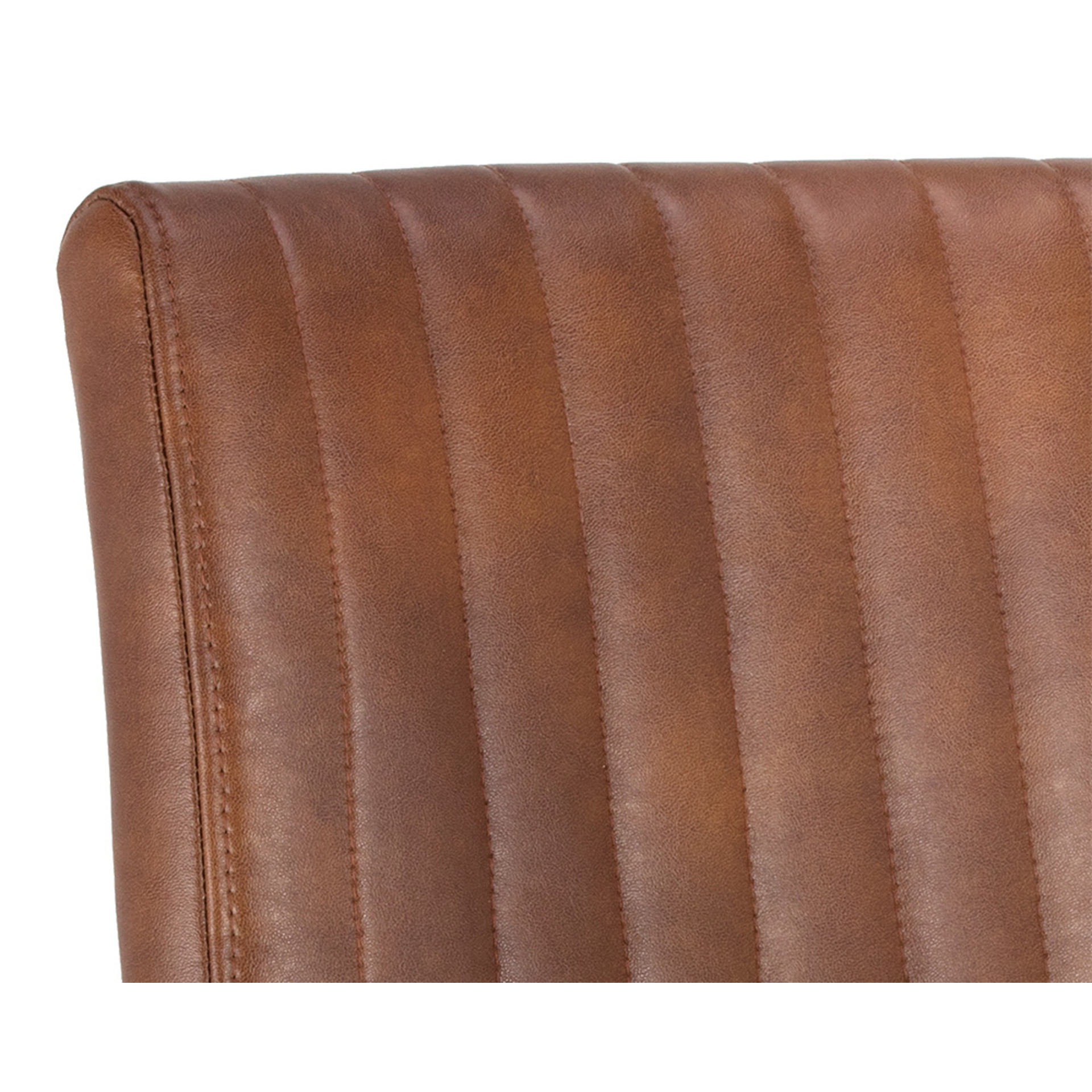 The Homer chair combines sophistication and practicality with its sleek contemporary design. Its brown synthetic leather upholstery adds a touch of elegance to your interior, while the vertical stitching creates a refined visual appeal.