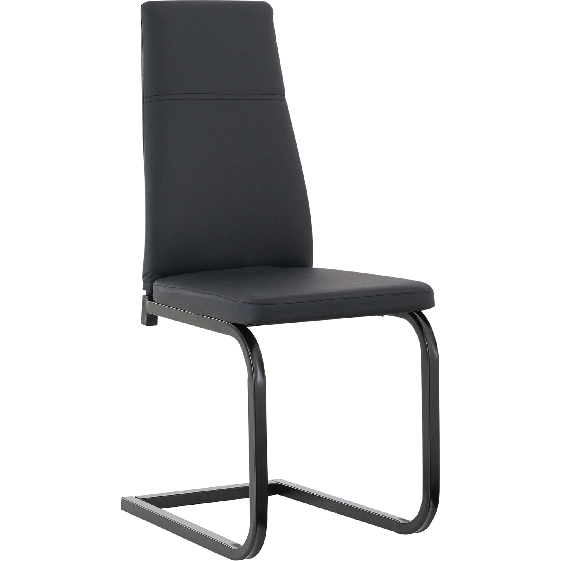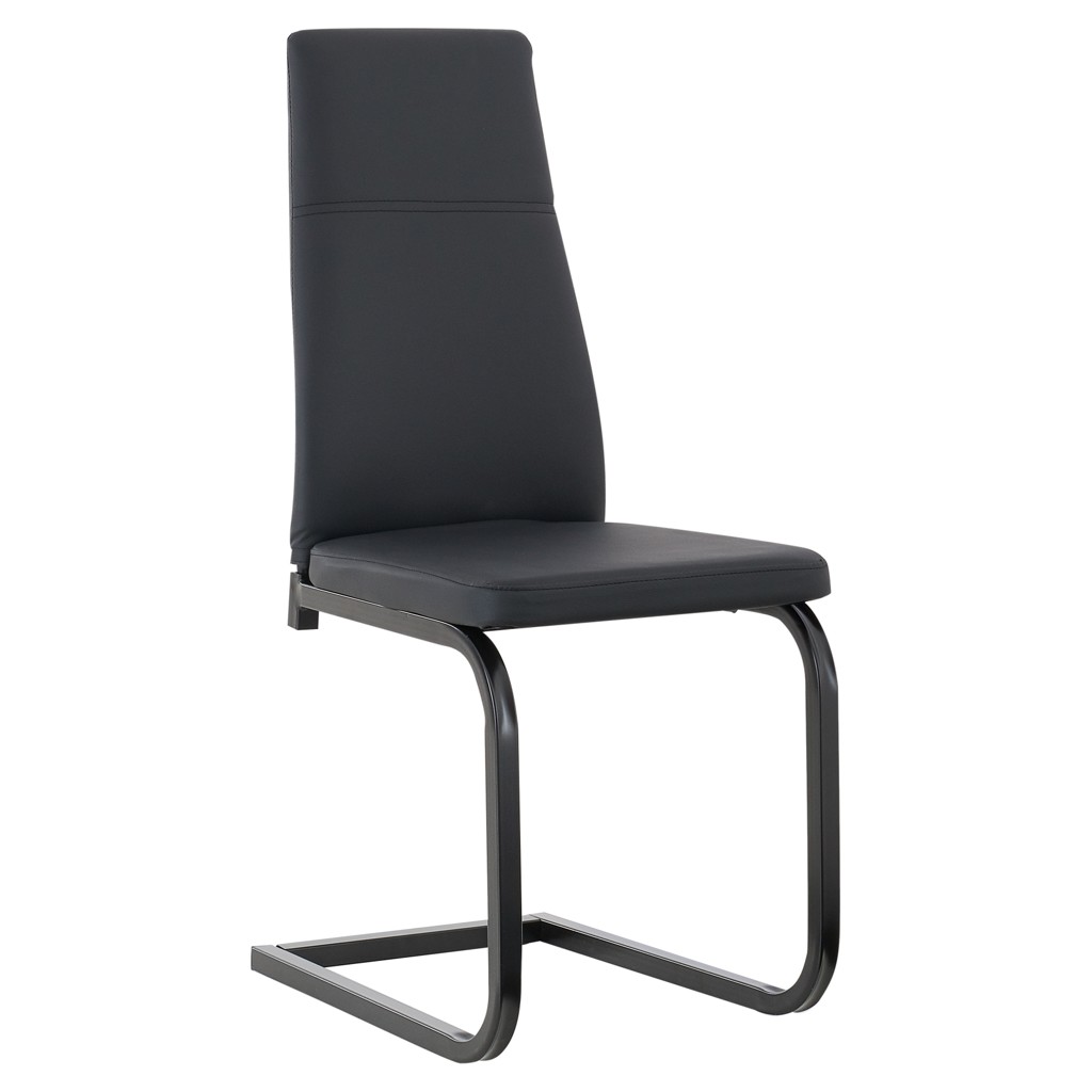 The T-210 chair combines sophistication and practicality with its sleek, contemporary design. Upholstered in black faux leather, it provides optimal comfort while being easy to maintain, perfect for both family meals and entertaining guests.