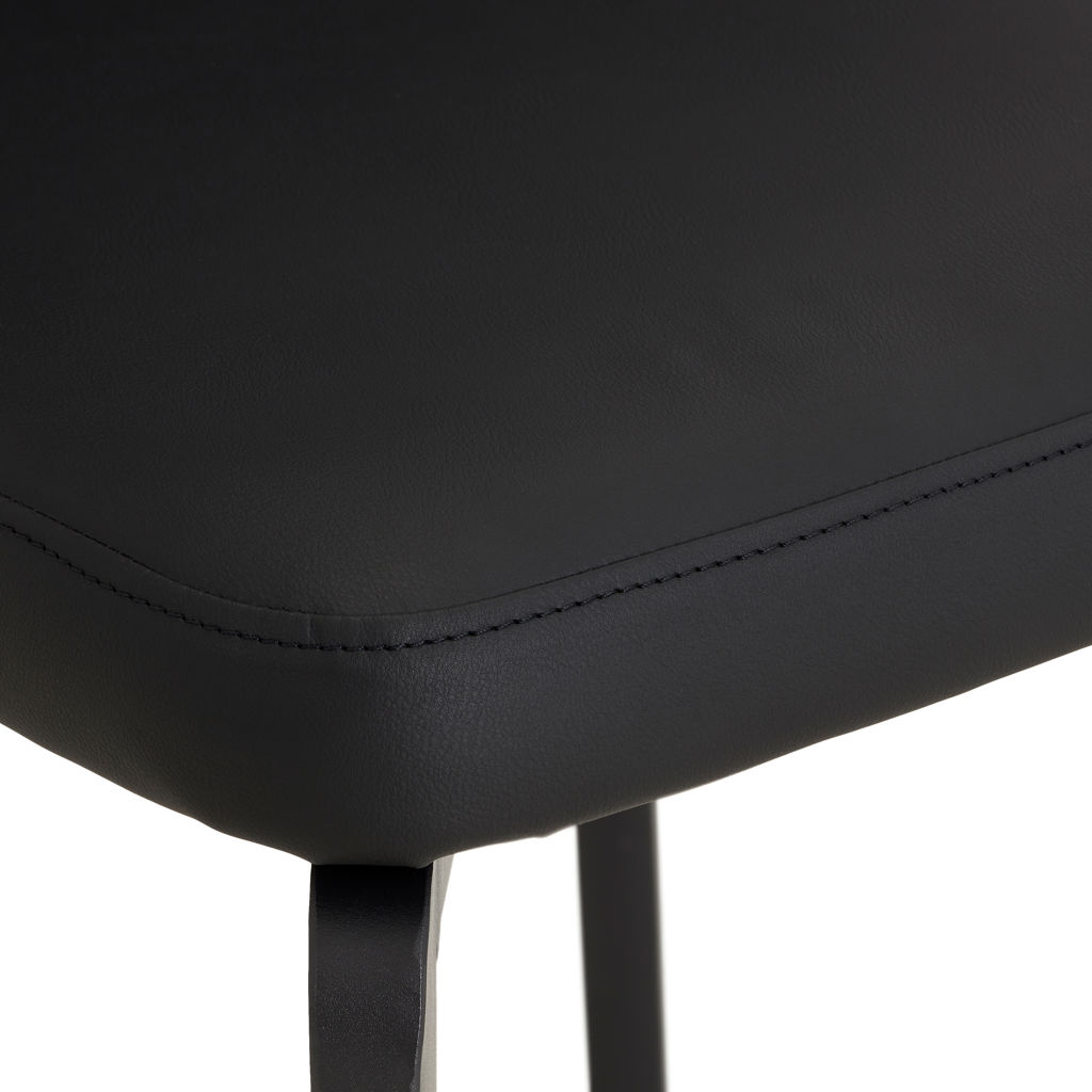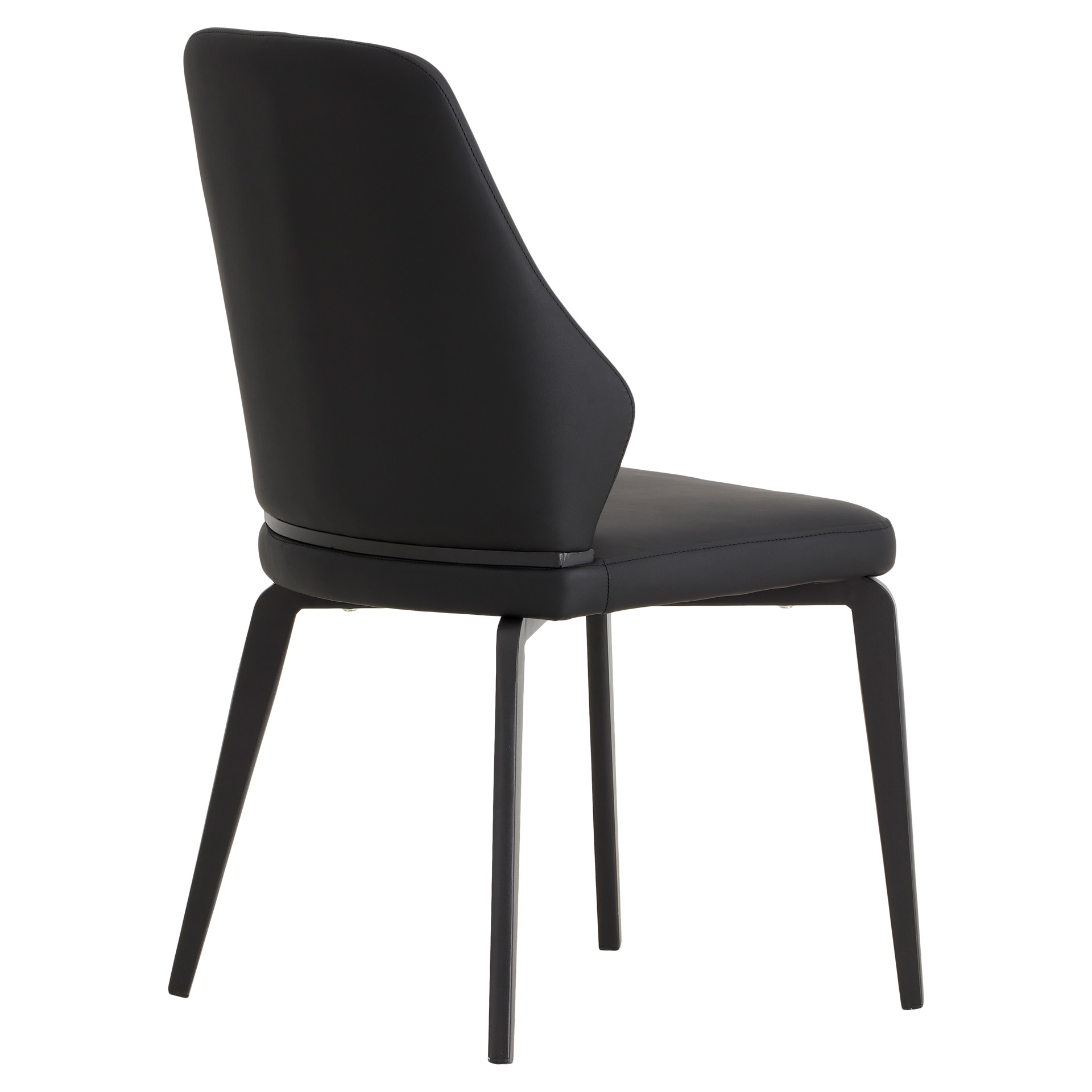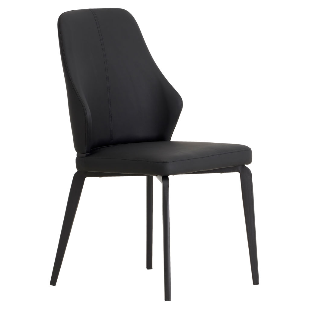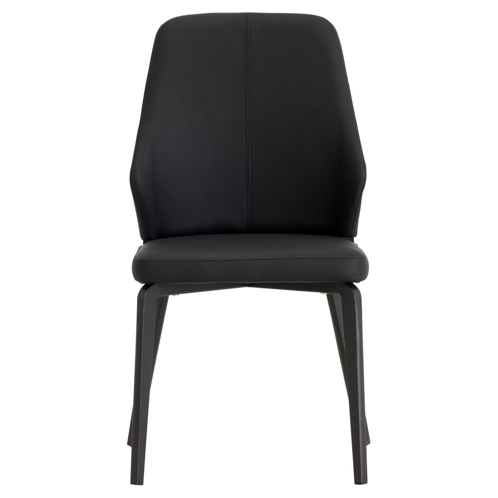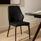 This dining chair perfectly blends contemporary style with everyday comfort. Its sleek, flowing design fits effortlessly into any modern interior, while the black faux leather upholstery adds timeless elegance and easy maintenance.