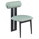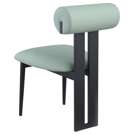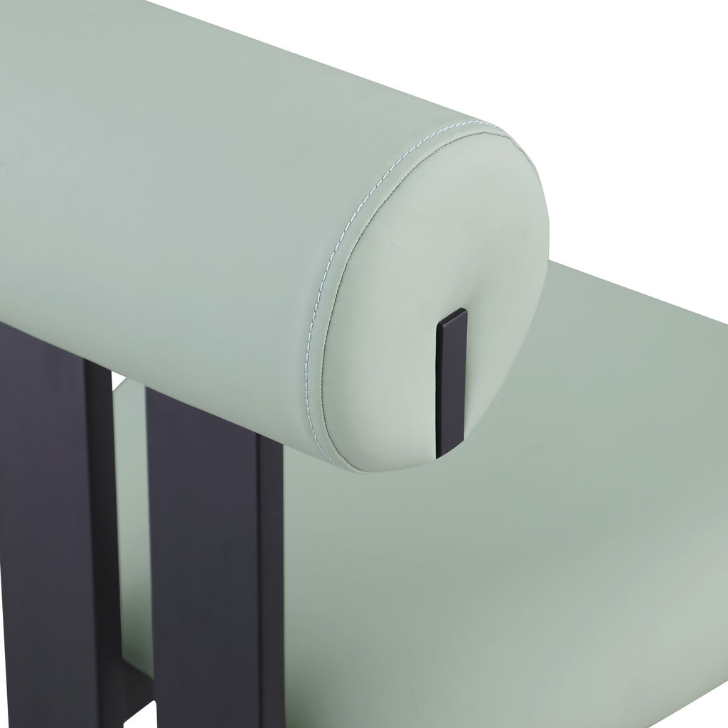 The chair features soft mint green faux leather upholstery for a look that is upscale and refined without the maintenance of real leather.