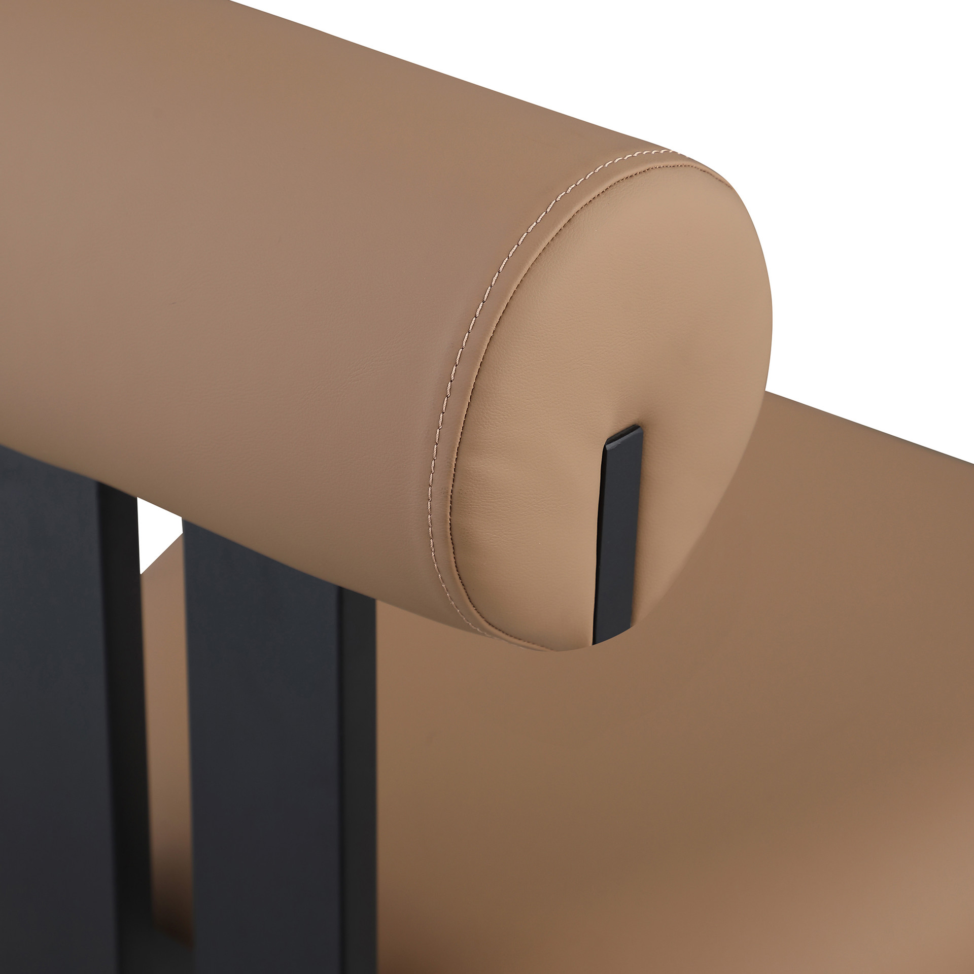 The chair features soft tan faux leather upholstery for a look that is upscale and refined without the maintenance of real leather.