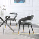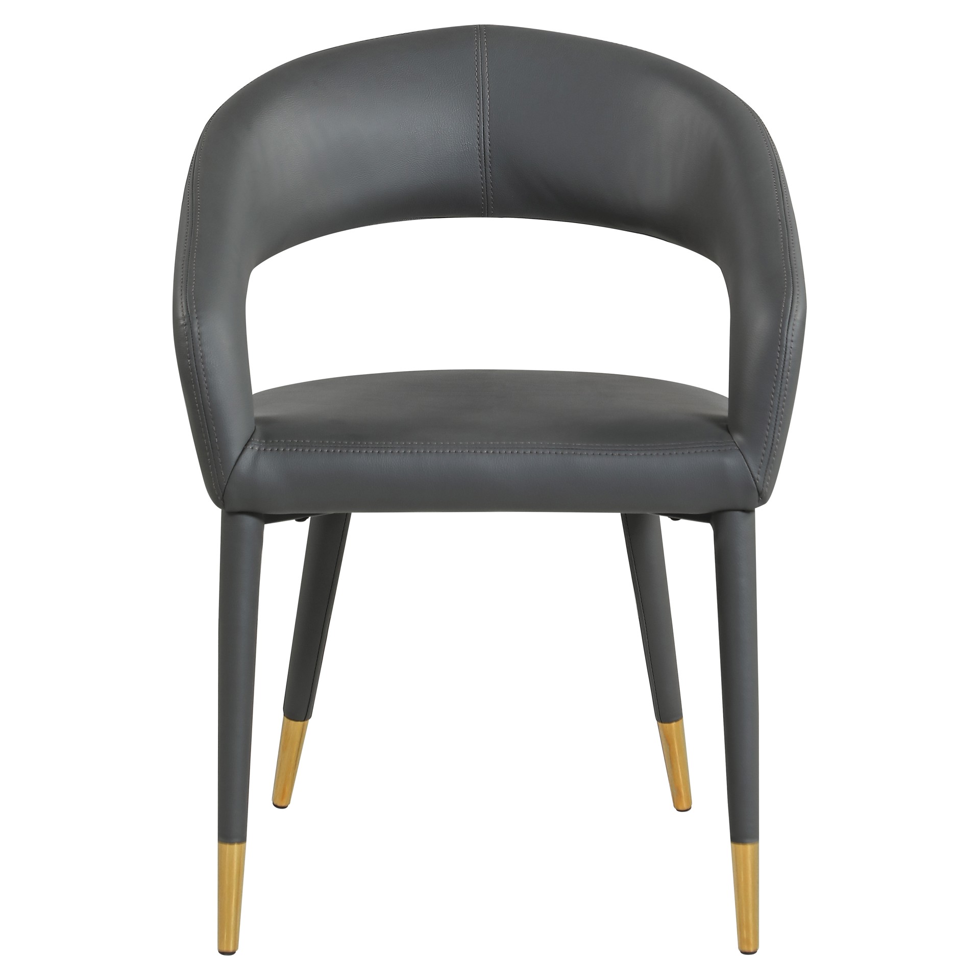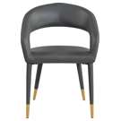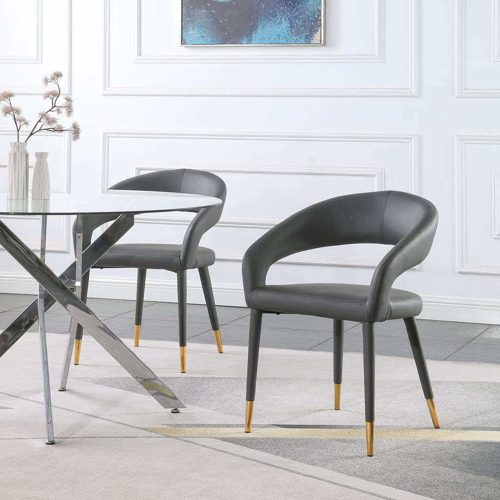 The rounded back adds comfort to mealtime and lends the chair a chic, eye-grabbing touch, while tapered legs topped with gold tips give the chair an elegant finish.