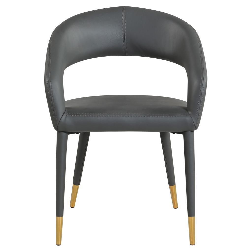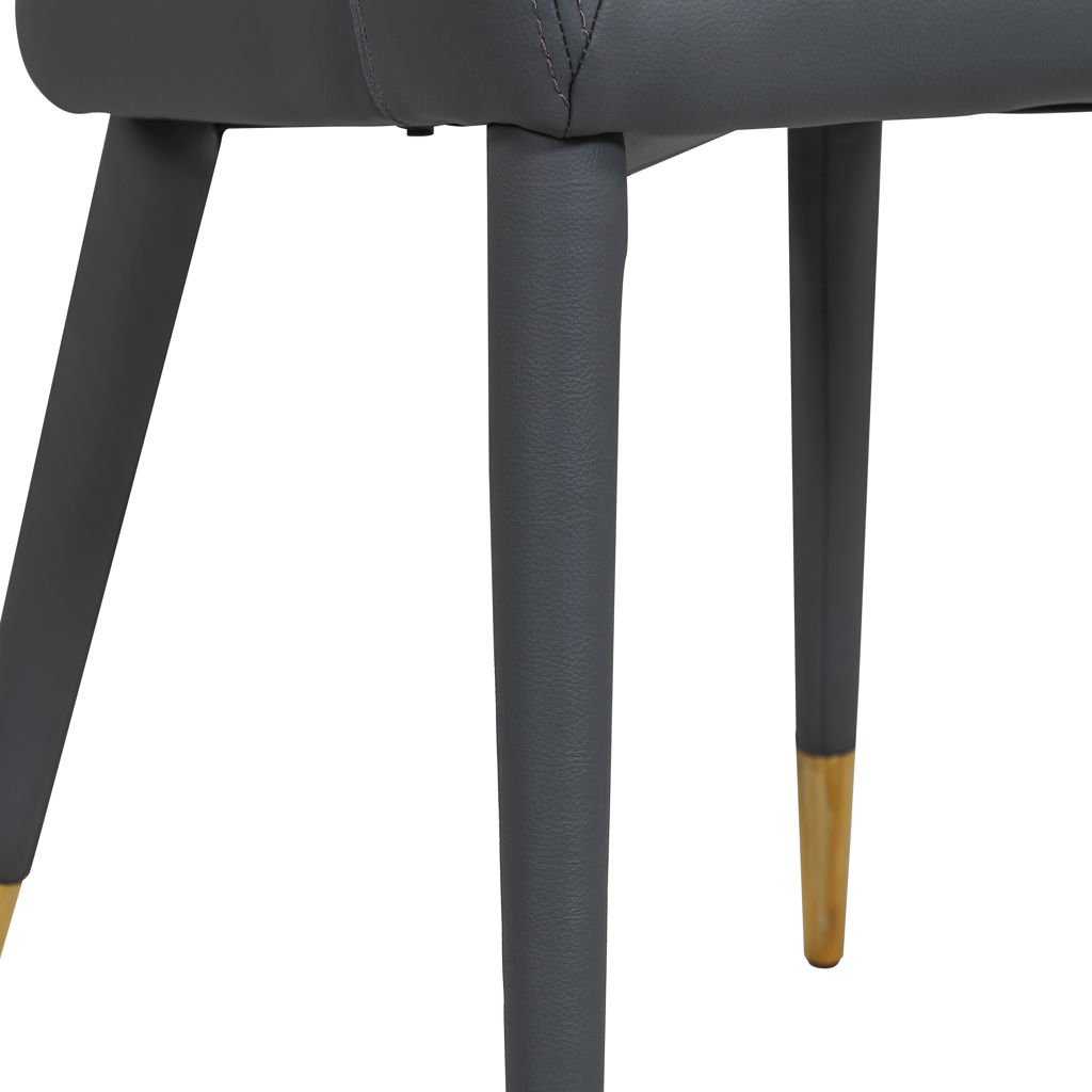 Soft grey faux leather upholstery makes this dining chair a sleek and inviting option for pairing with your favorite dining table.