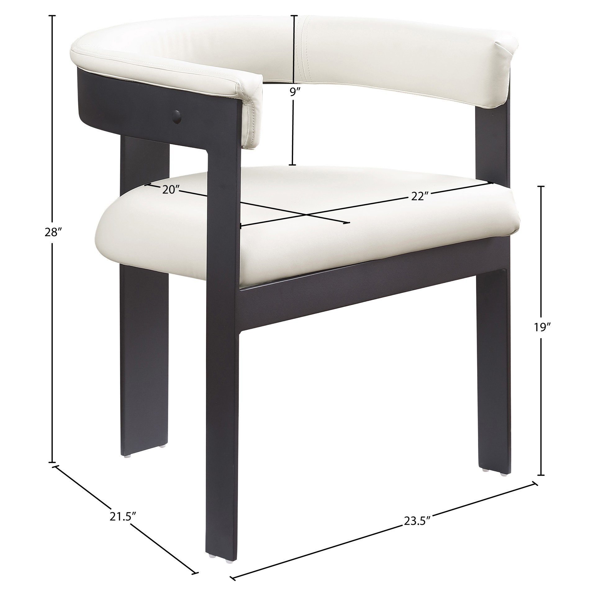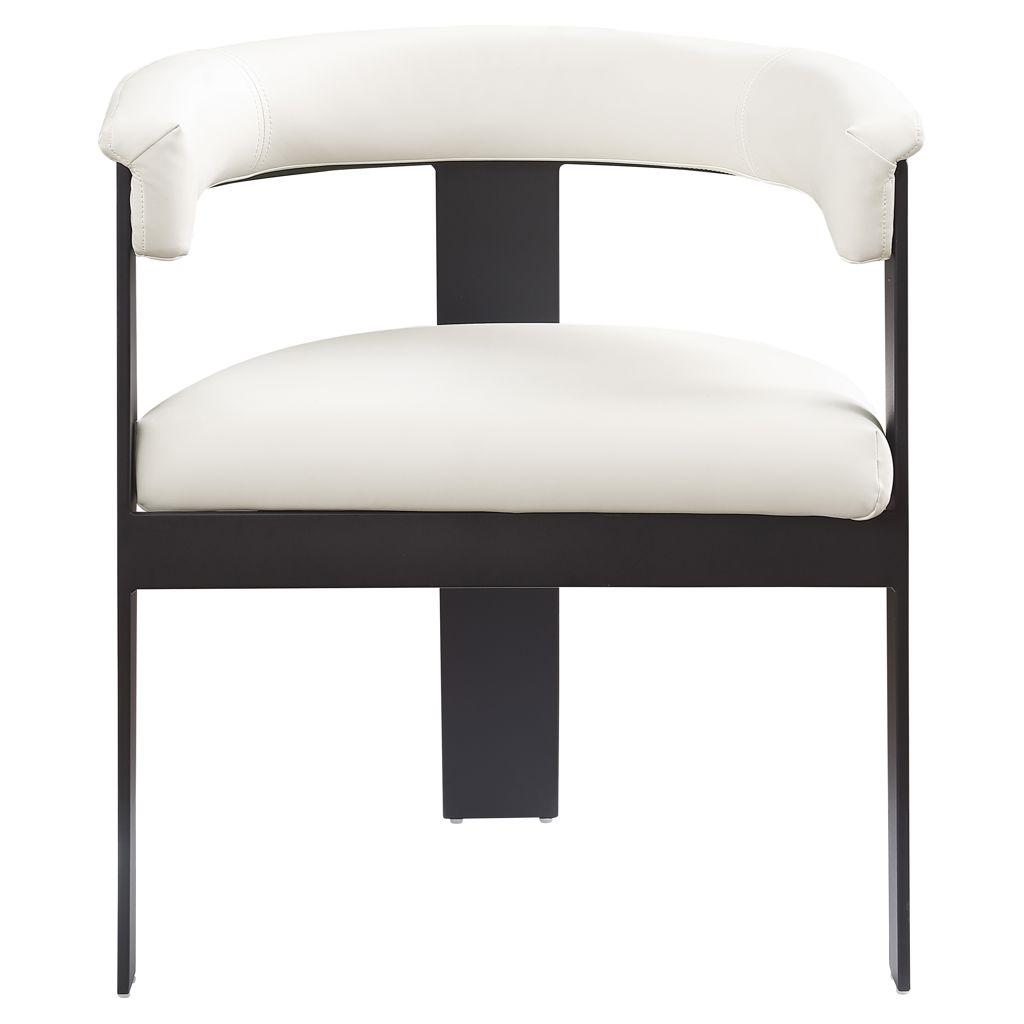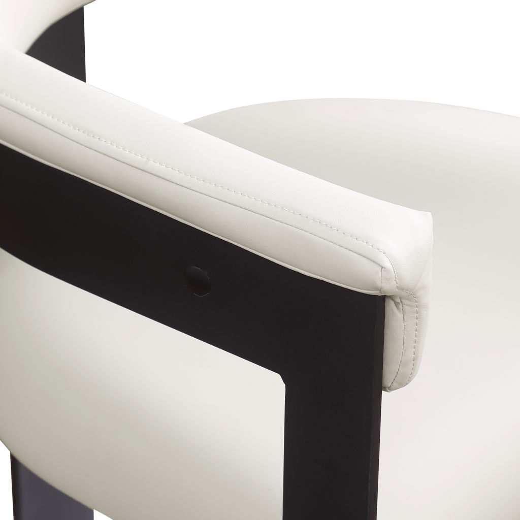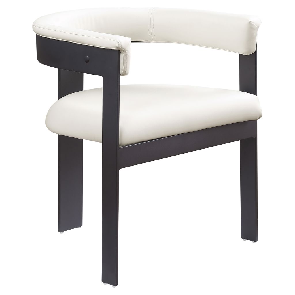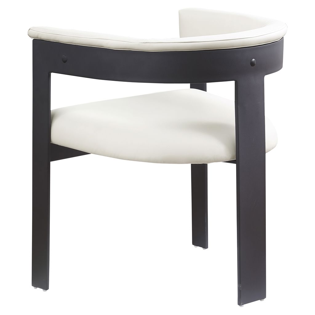 This chair offers both style and comfort, with soft cream vegan leather seat and back providing a sleek and inviting look that pairs well with an array of dining tables.