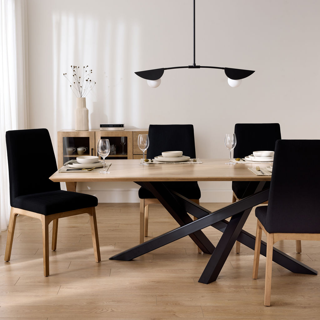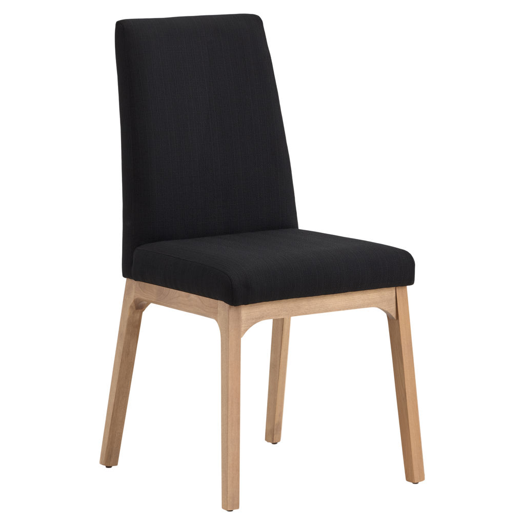 This elegant dining chair combines comfort and sophistication to transform your dining space. Its padded black fabric seat and backrest provide optimal support, while the natural cherry wood frame adds a warm and authentic touch to your interior.