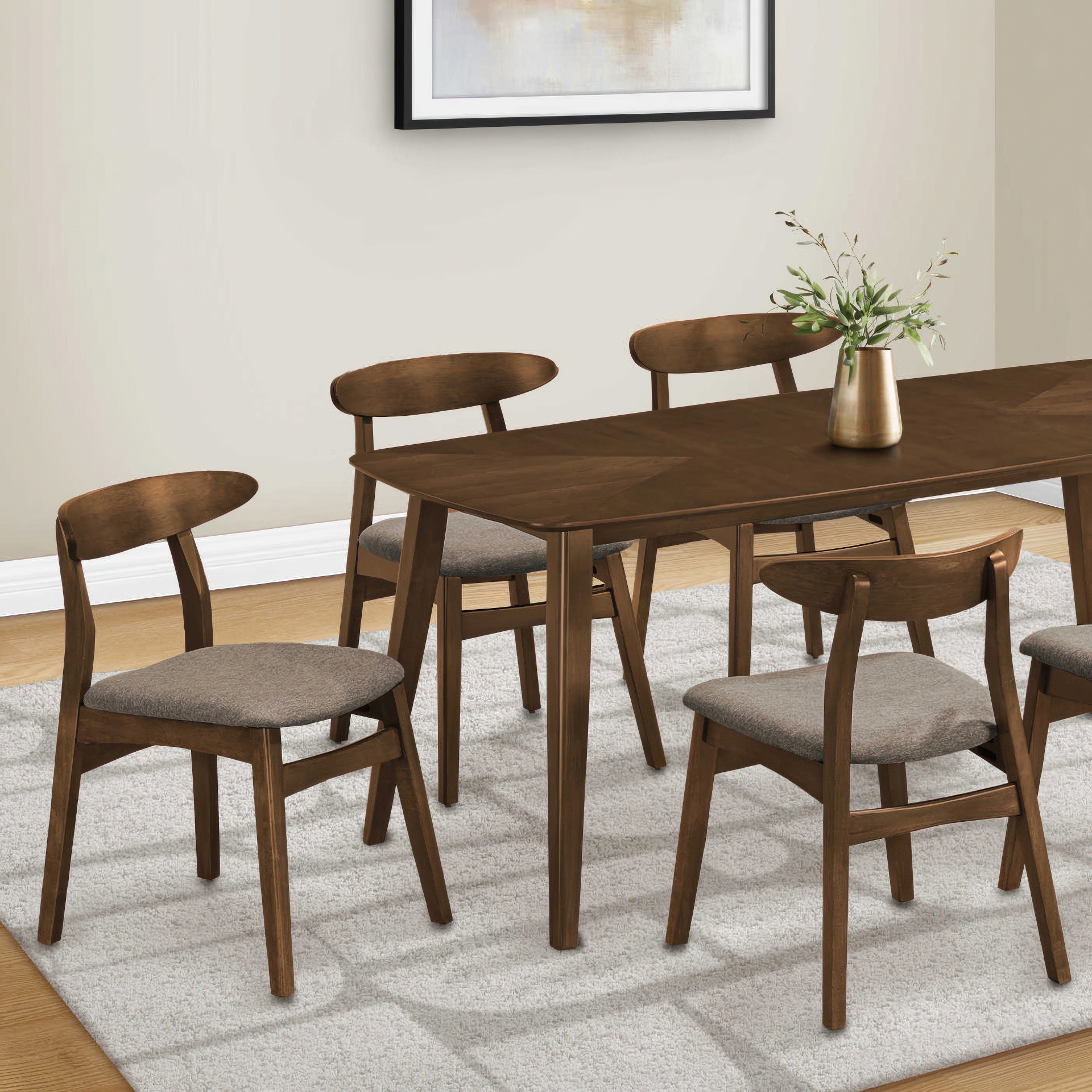 Crafted with sturdy construction, these dining chairs feature angled solid wood legs in a rich dark walnut finish that add a touch of elegance to your kitchen or dining room. The ergonomic friendly, curved solid back design offers ample support while enjoying a meal or engaging in lively conversation around the table.