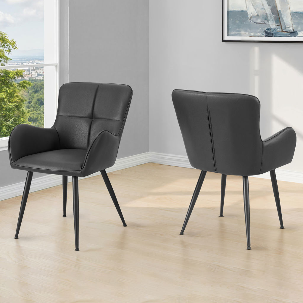 Crafted with a sleek black leather-look upholstery, these chairs fit seamlessly into contemporary kitchens or dining rooms.