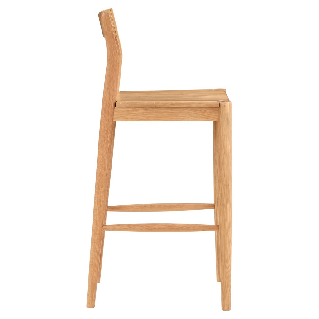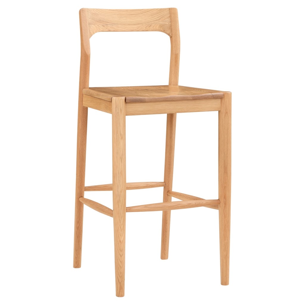 Available in oak, the Owing bar stool is a refined spin on the traditional.