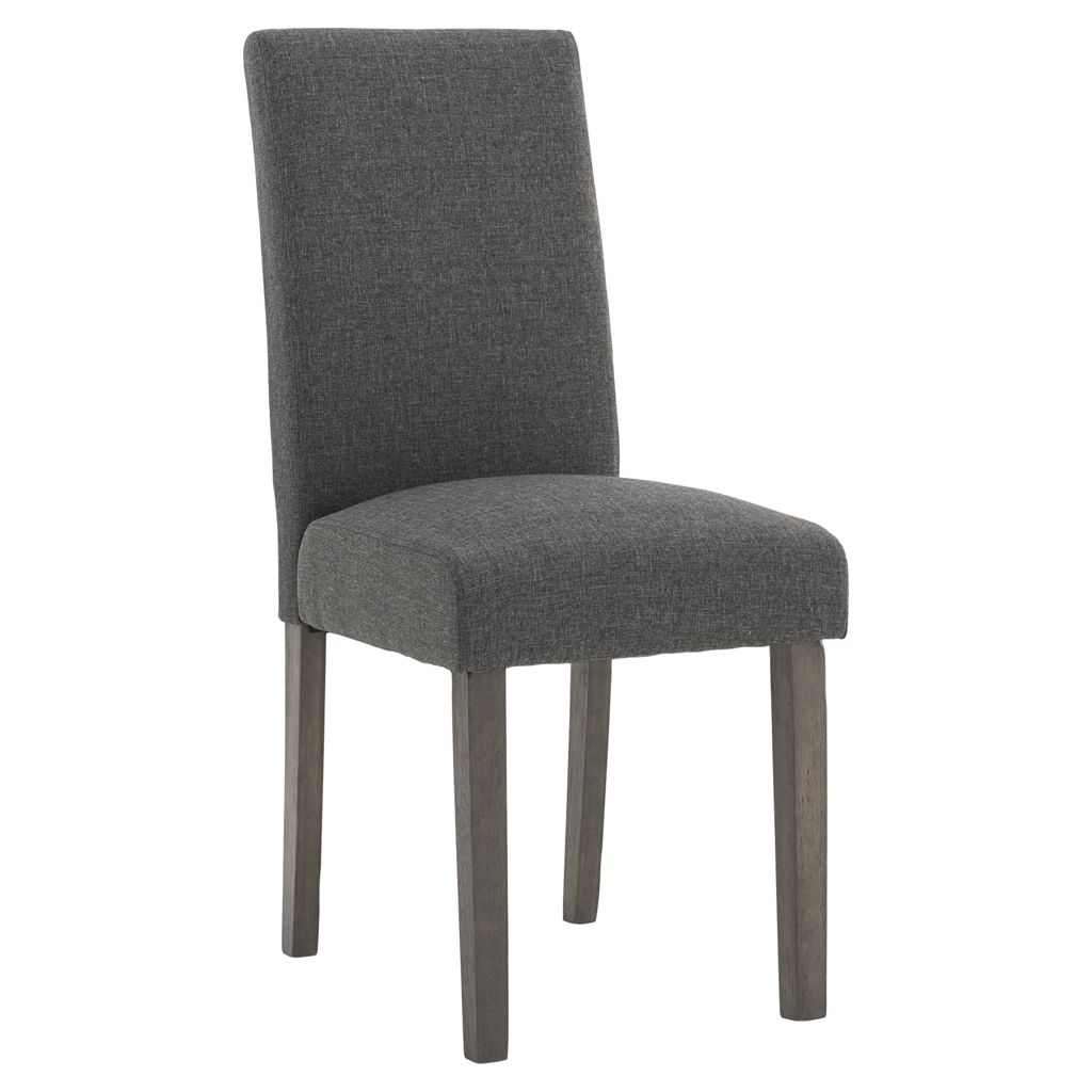 This dining chair combines comfort and elegance with its soft-touch fabric upholstery and versatile grey shade that blends perfectly with any décor. Its high backrest provides excellent support, while the padded seat ensures lasting comfort for long meals.