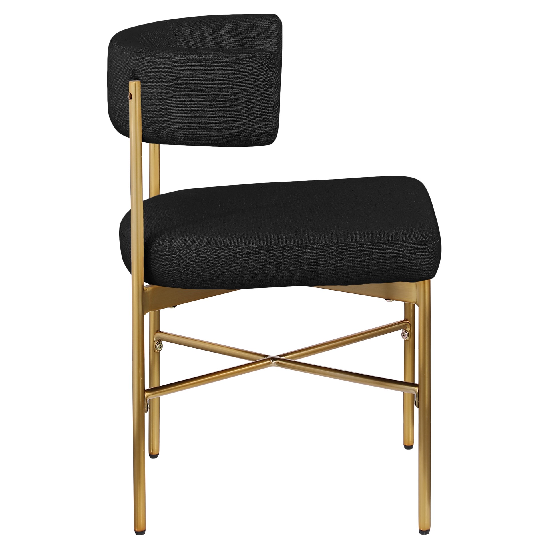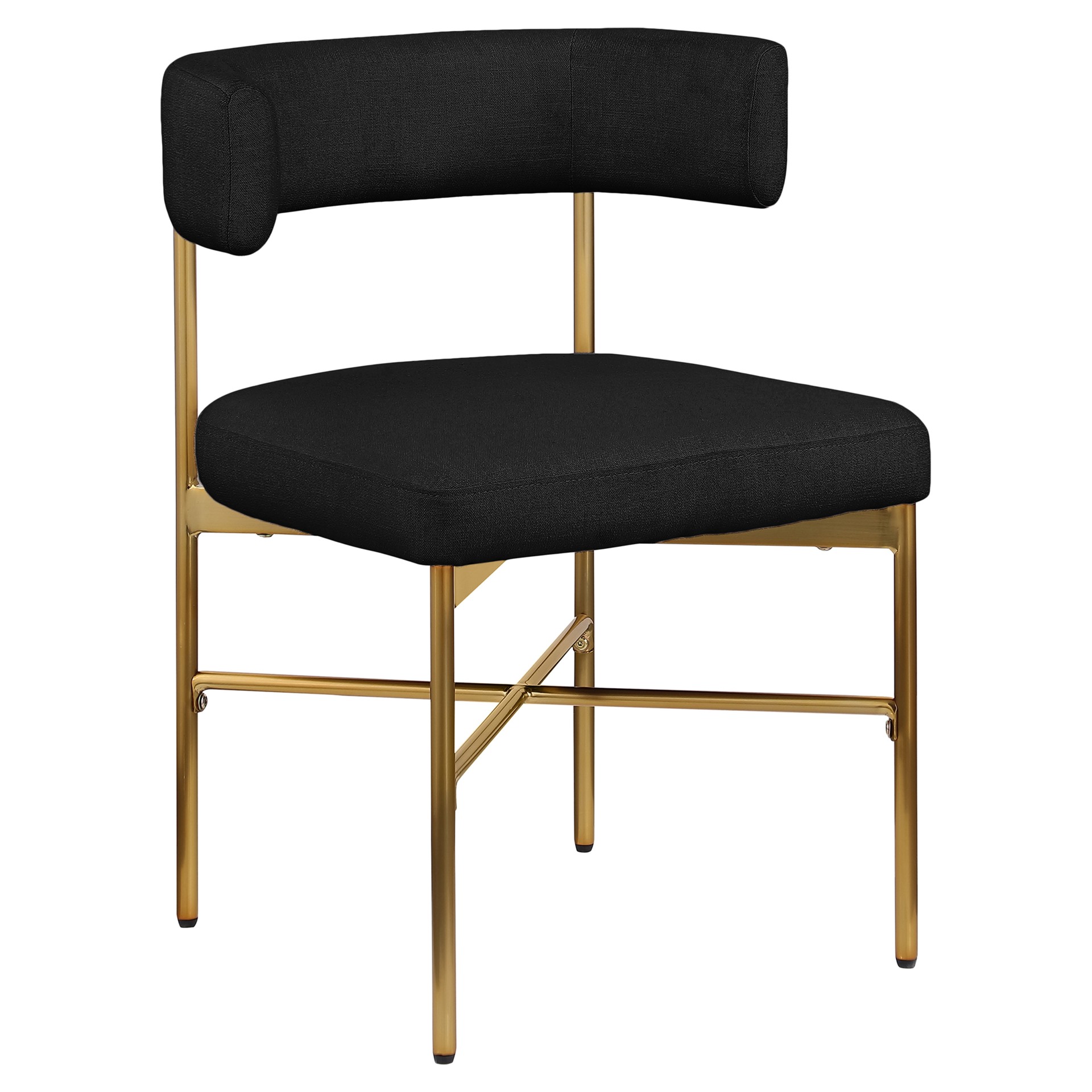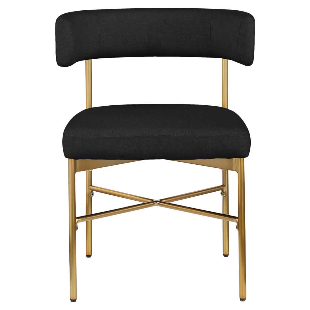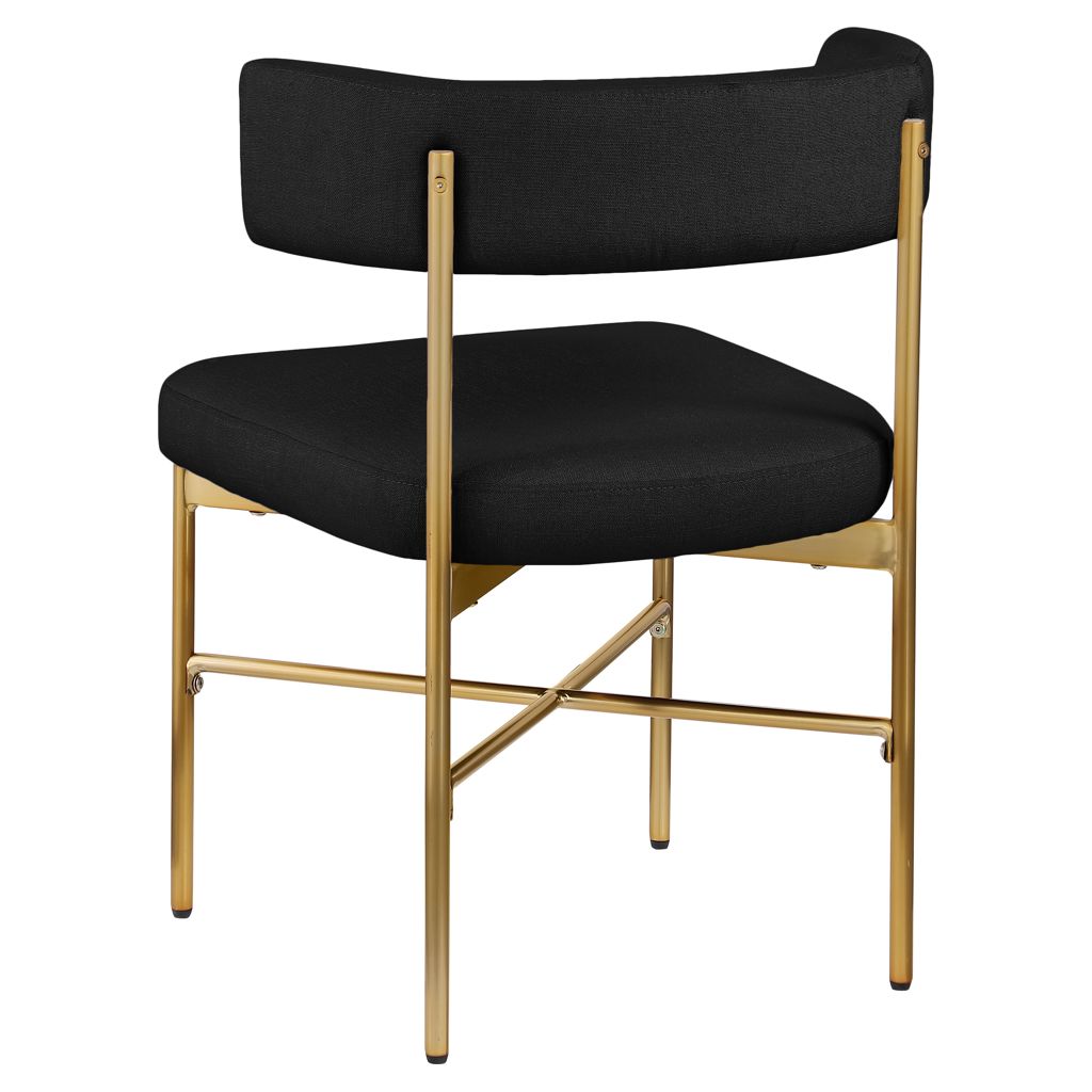 This lovely chair features rich black durable linen textured fabric upholstery on the curved seat back and seat, giving your space an elegant and refined feel.