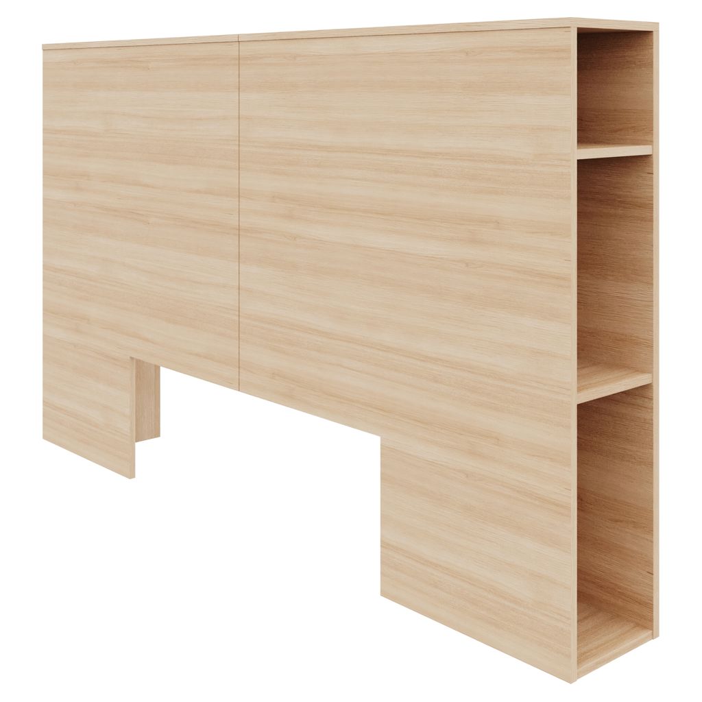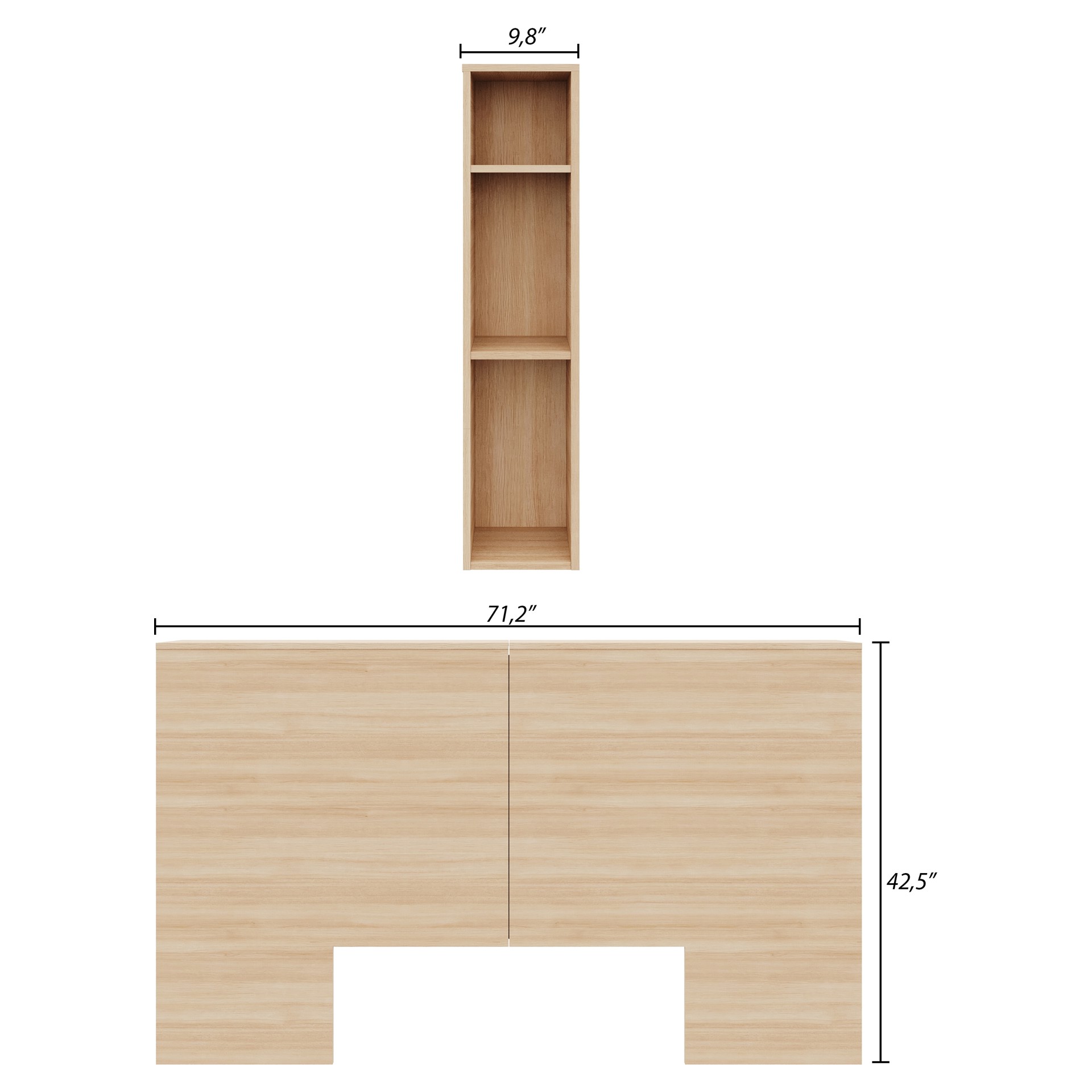 Crafted from high-quality engineered wood, our headboard showcases the natural grain color variation, bringing an organic touch to your space. Enjoy the added convenience of three shelves on each side, perfect for books or storage.