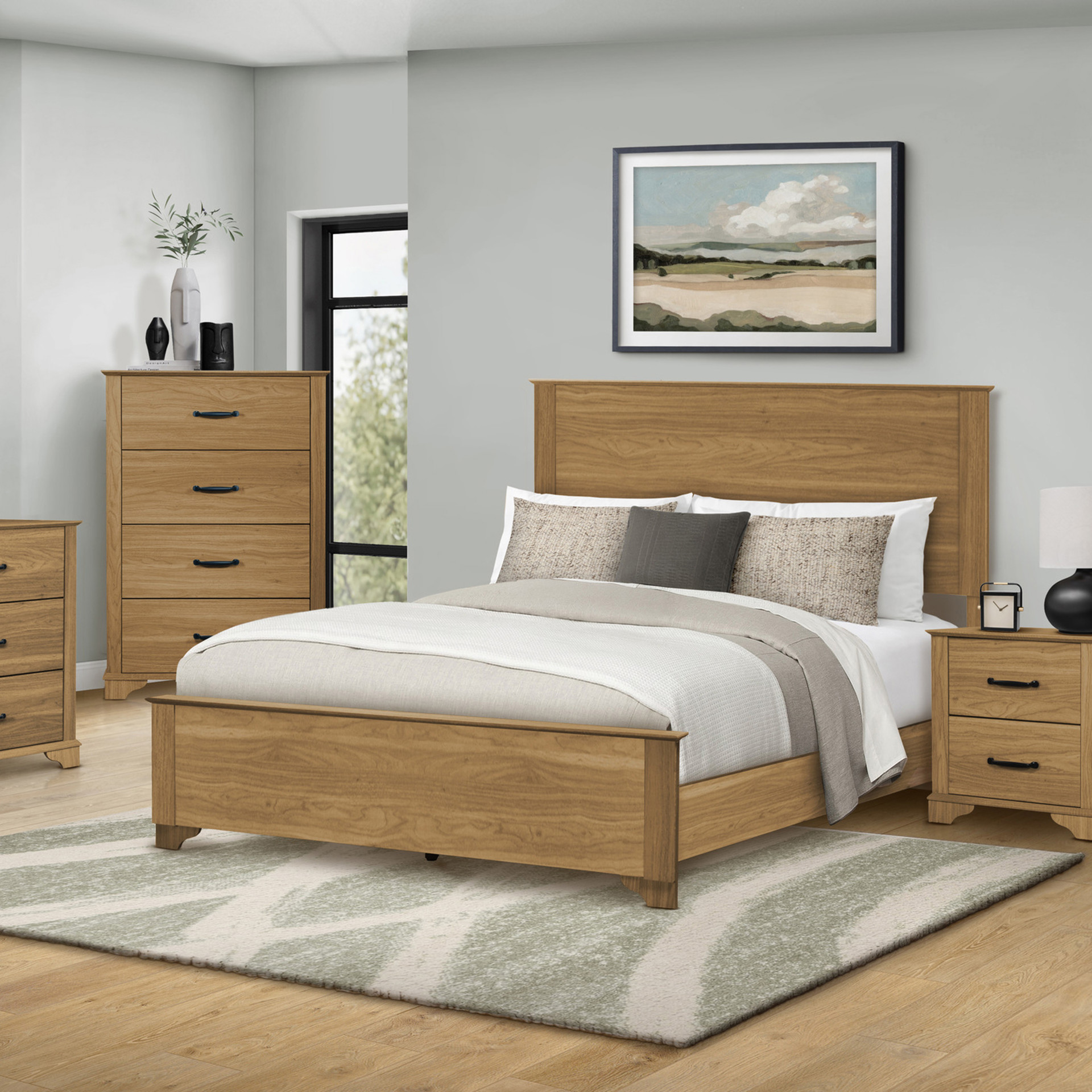 Crafted in an elegant medium oak laminate finish, this stunning piece becomes a striking focal point in any contemporary bedroom.