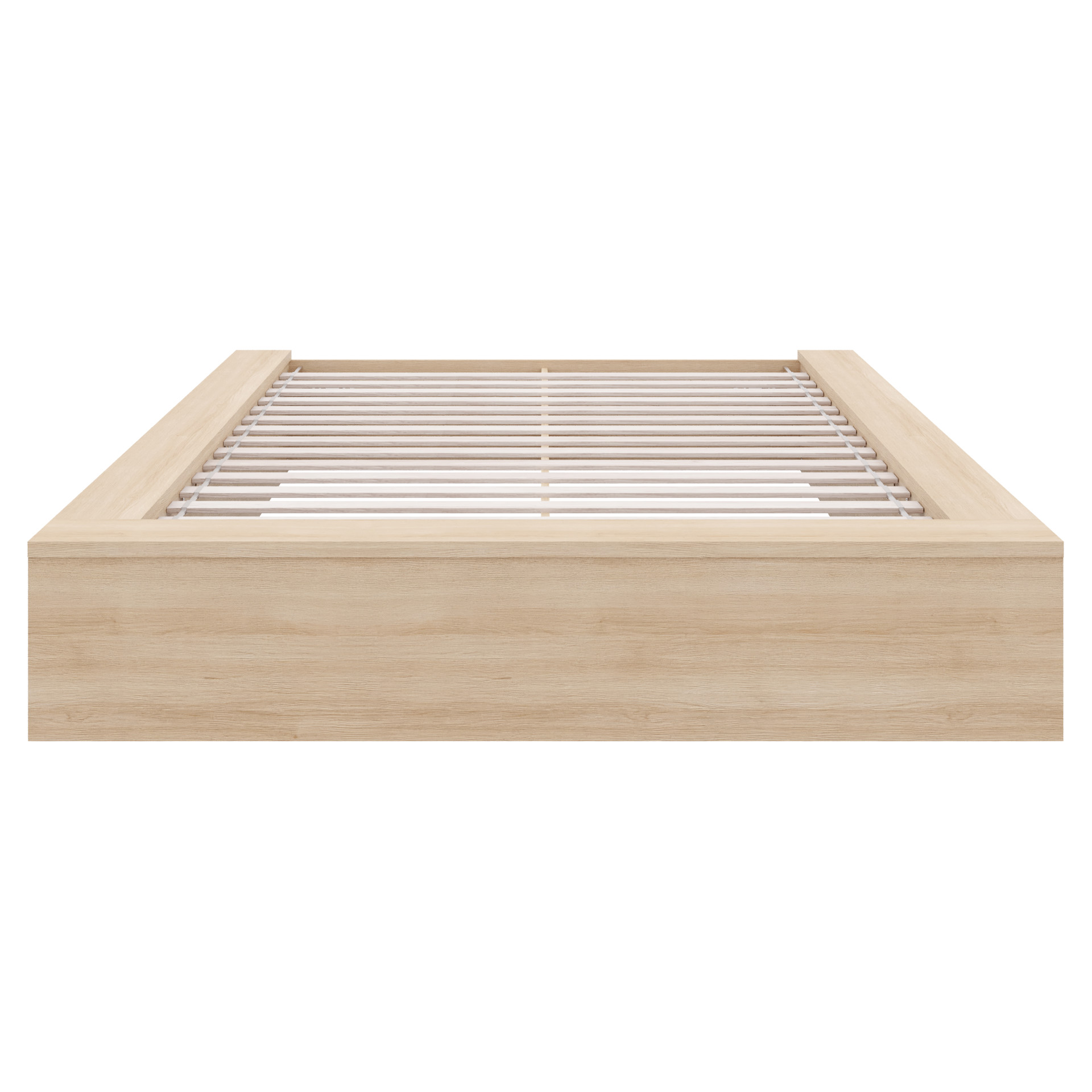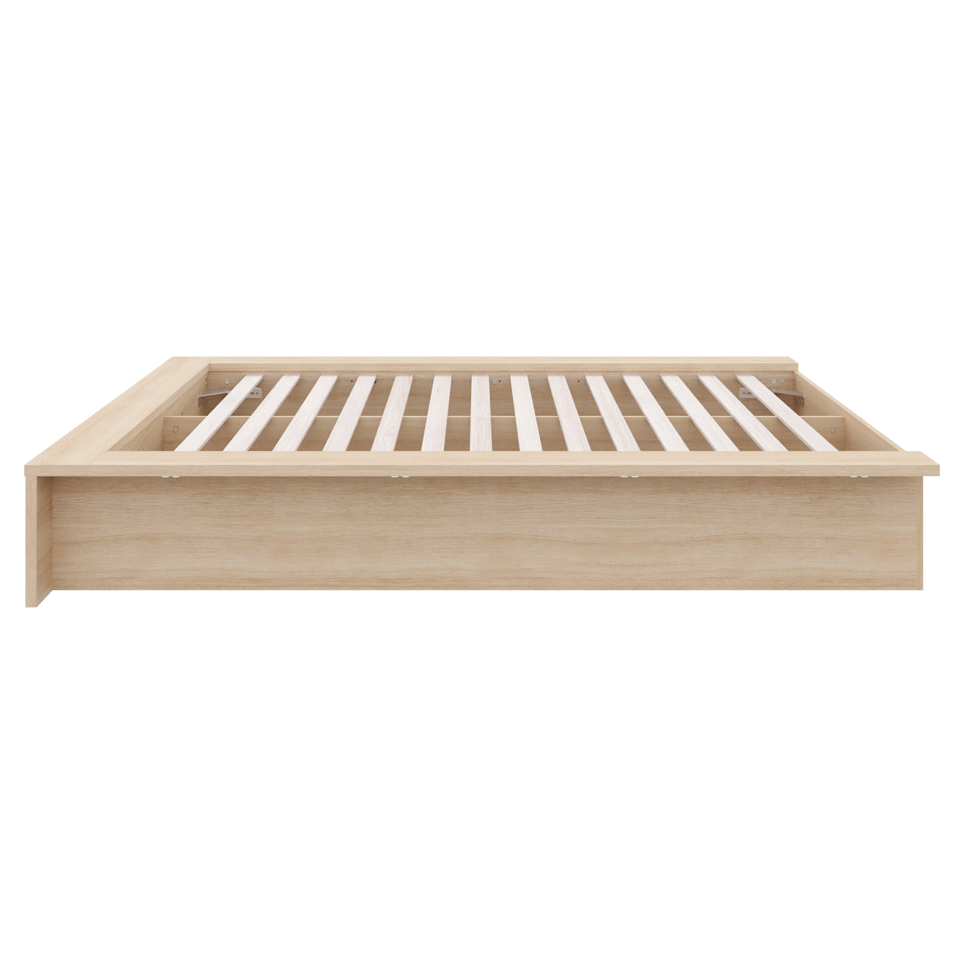 Crafted from engineered wood in a Natural Blonde Oak finish, this platform bed boasts a sleek, minimalist design that adds a touch of contemporary elegance to your space. The wood's natural grain color variation gives it an organic, inviting feel.