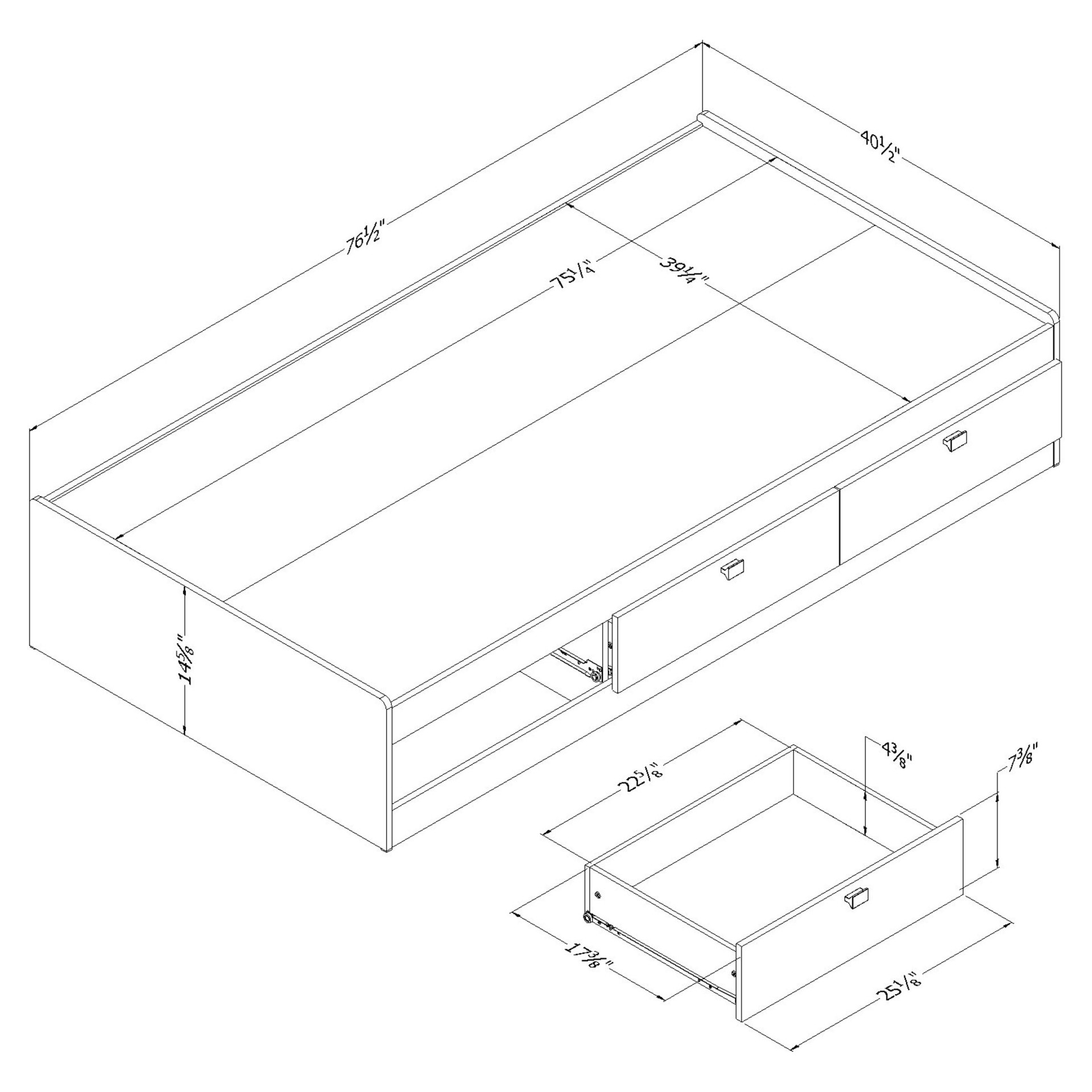 Featuring plenty of storage for clothes, bedding or seasonal items, this bed has 3 convenient drawers with smooth opening metal slides. All 3 drawers are on the same side of the bed frame, which is reversible, allowing the drawers to be accessed from either side. The bed is an economic choice as it does not require a box spring.