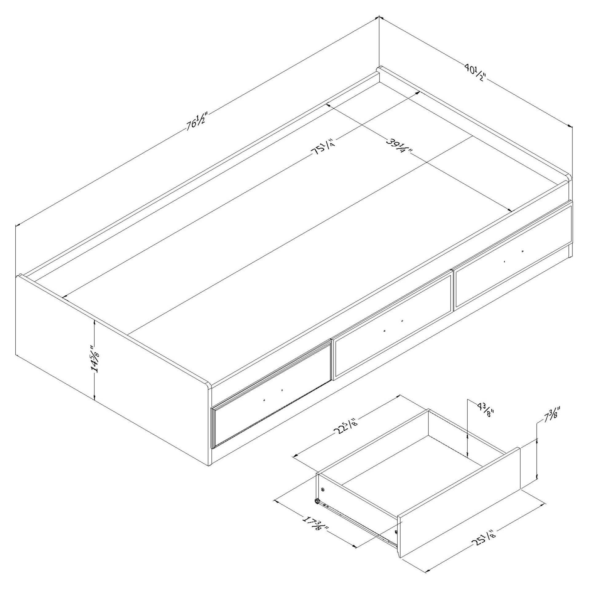 Fynn Mates Bed with 3 Drawers (Twin/Single) South Shore 11953