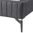The deep channel tufting adds depth and texture to the overall design, while the sleek black metal legs elevate its character and charm to new heights.