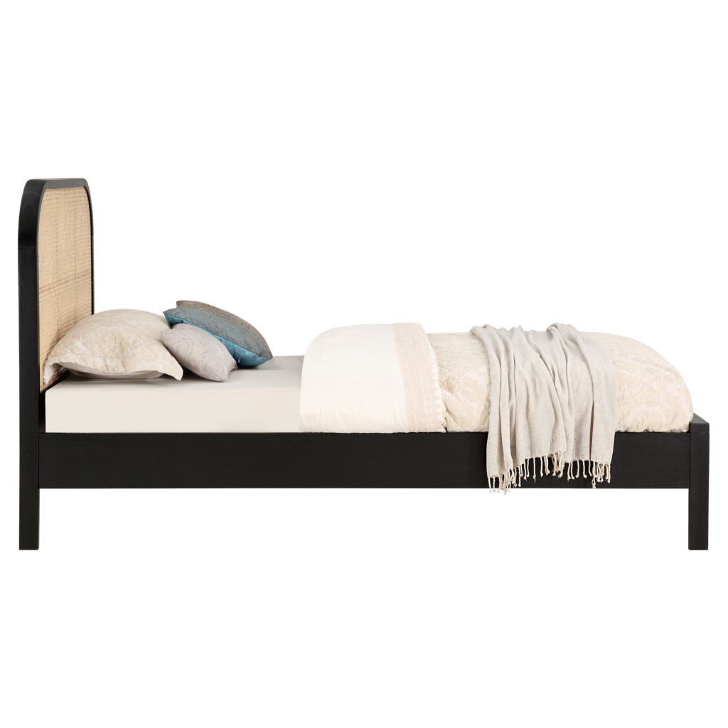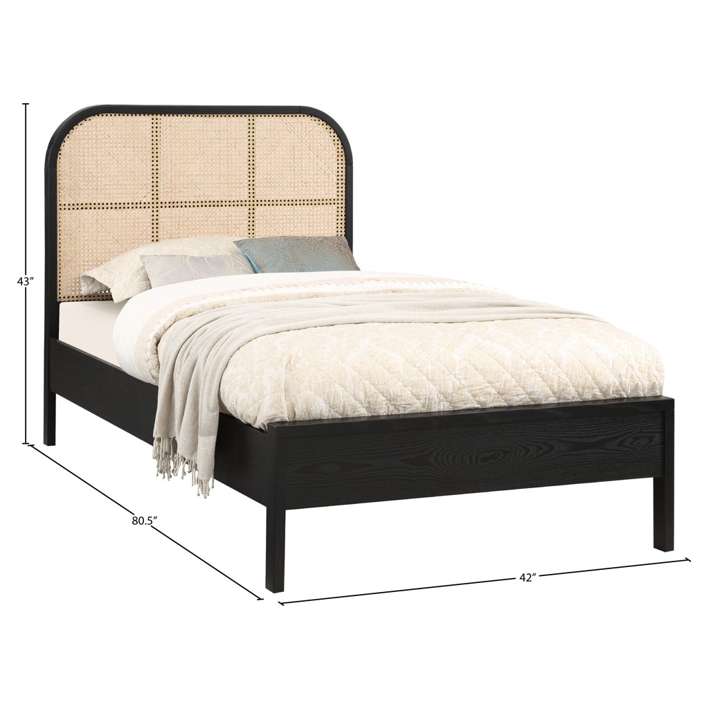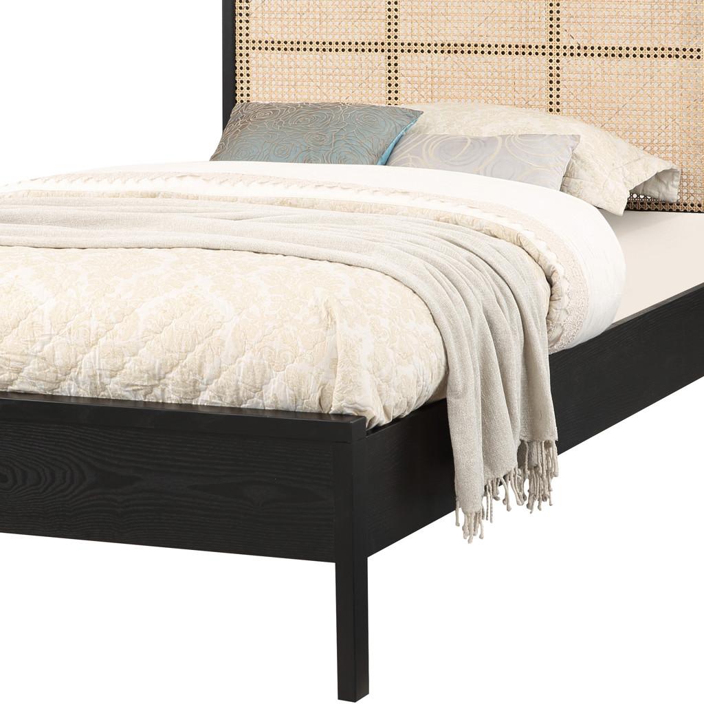 The rich black finish on ash veneer lends it a beautiful aesthetic while the natural cane insert on the headboard adds a hard-to-miss contrast that drives home the bed's elegance and sophistication.