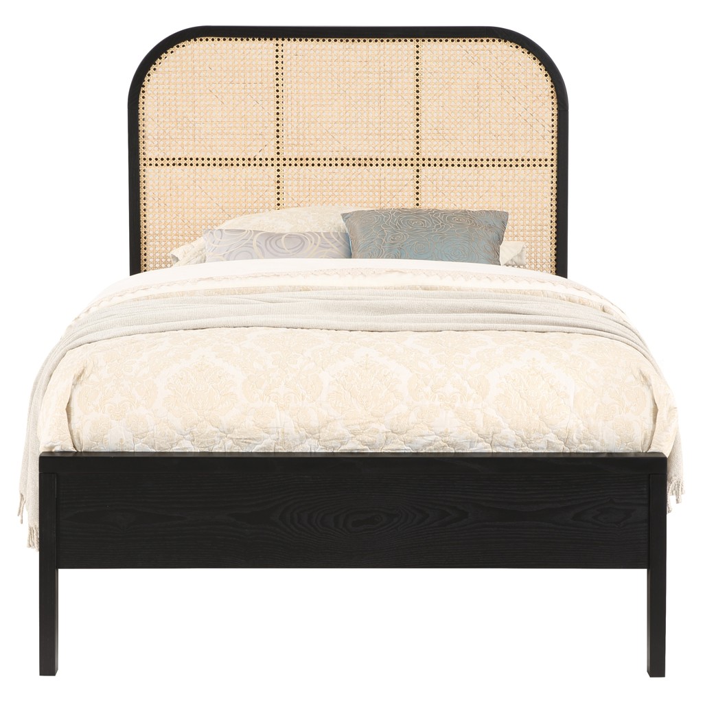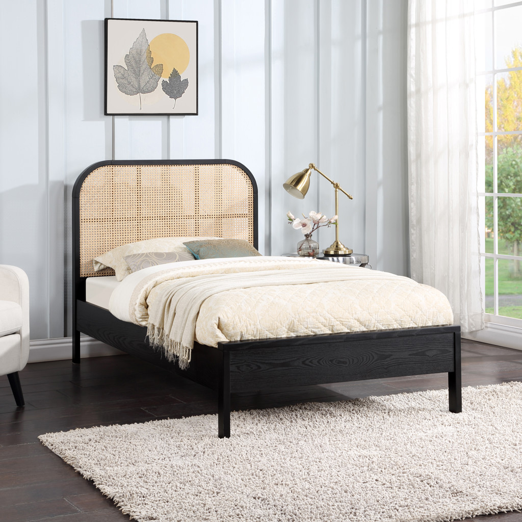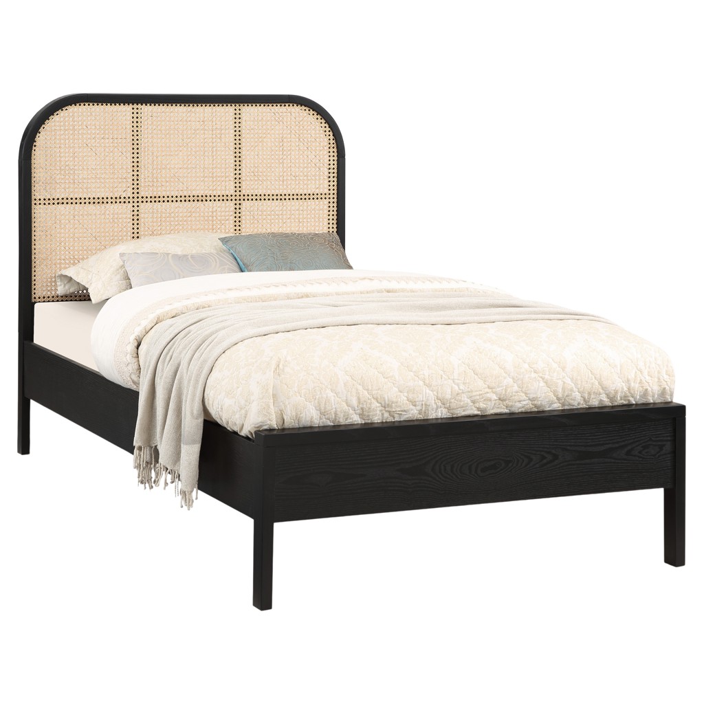 The rich black finish on ash veneer lends it a beautiful aesthetic while the natural cane insert on the headboard adds a hard-to-miss contrast that drives home the bed's elegance and sophistication.