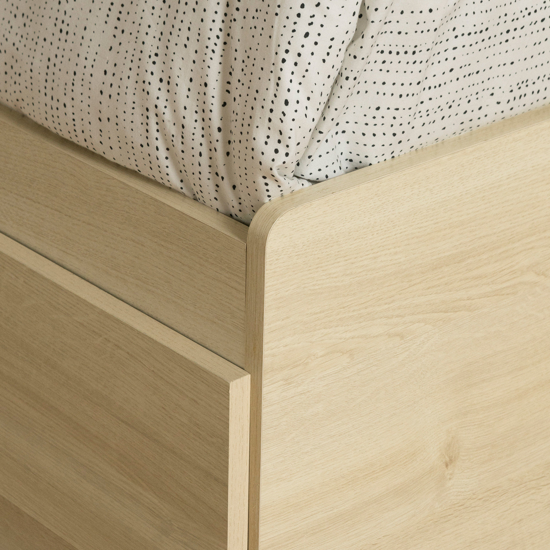 With its clean design and modern lines, this bed features a contemporary look that blends effortlessly with any décor. Rounded corners ensure added safety while bringing a soft touch to the room. Highly versatile, this bed fits just as well in a minimalist space as in a more colorful bedroom.