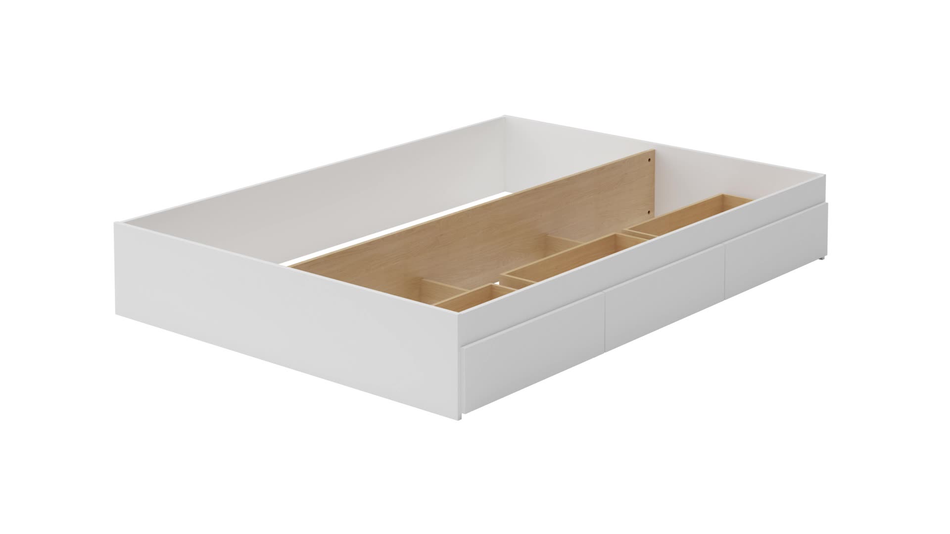 The double-size storage bed offers 3 convenient storage drawers mounted on metal slides, ideal for storing away bedding, clothes, toys and books.