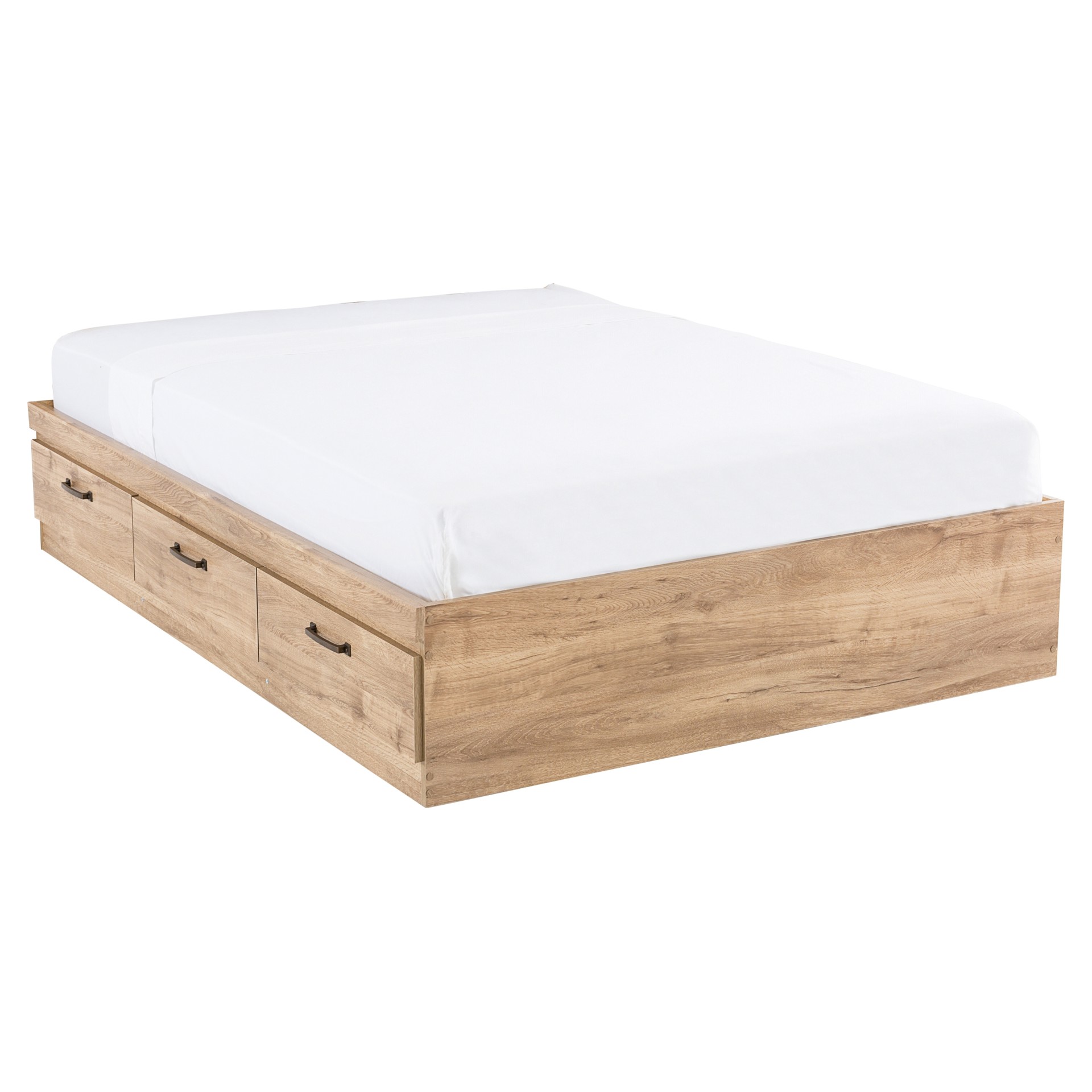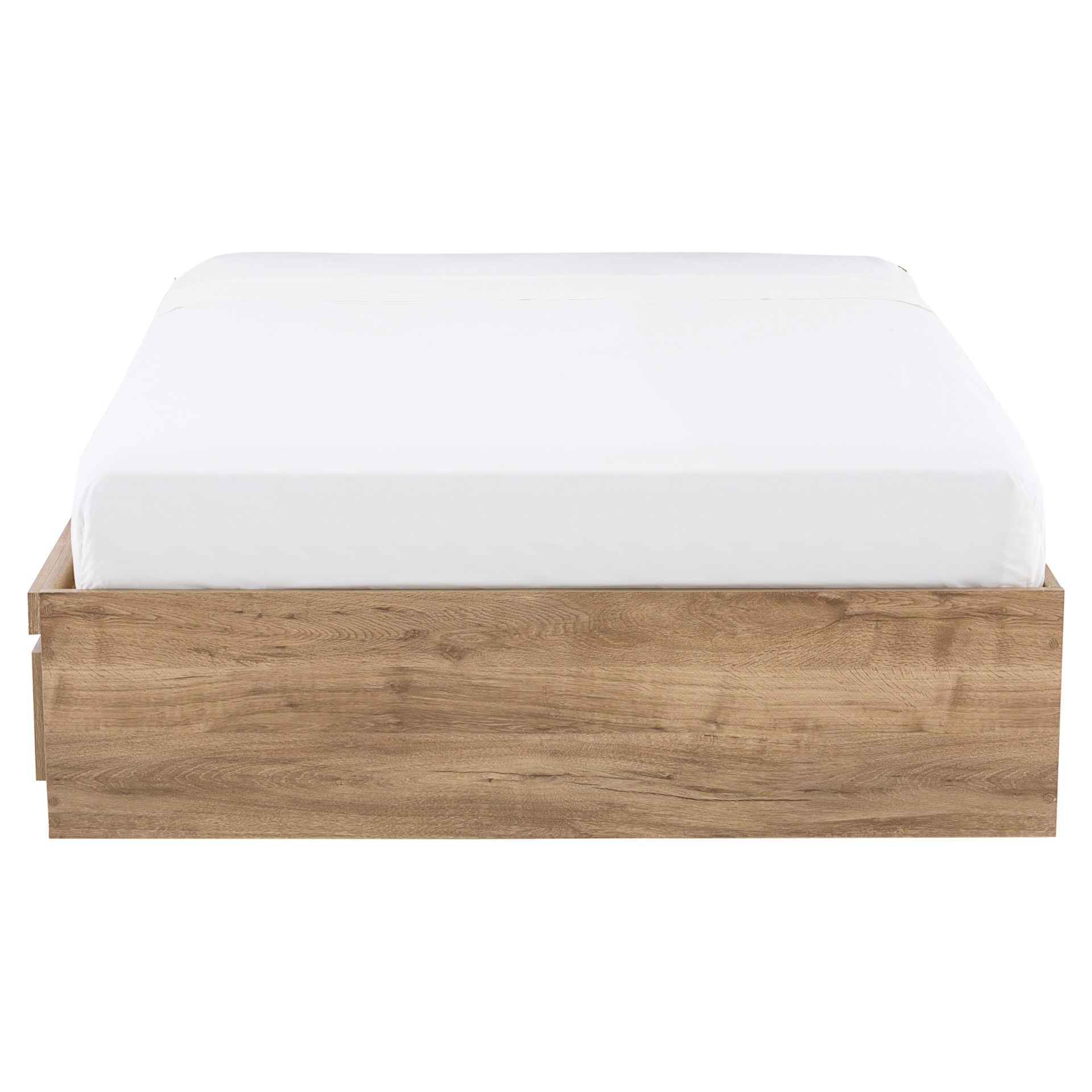 Make the most of your space with this practical bed featuring integrated storage drawers. Its natural wood-effect finish adds a warm touch to your bedroom while offering smart storage solutions for your everyday essentials.