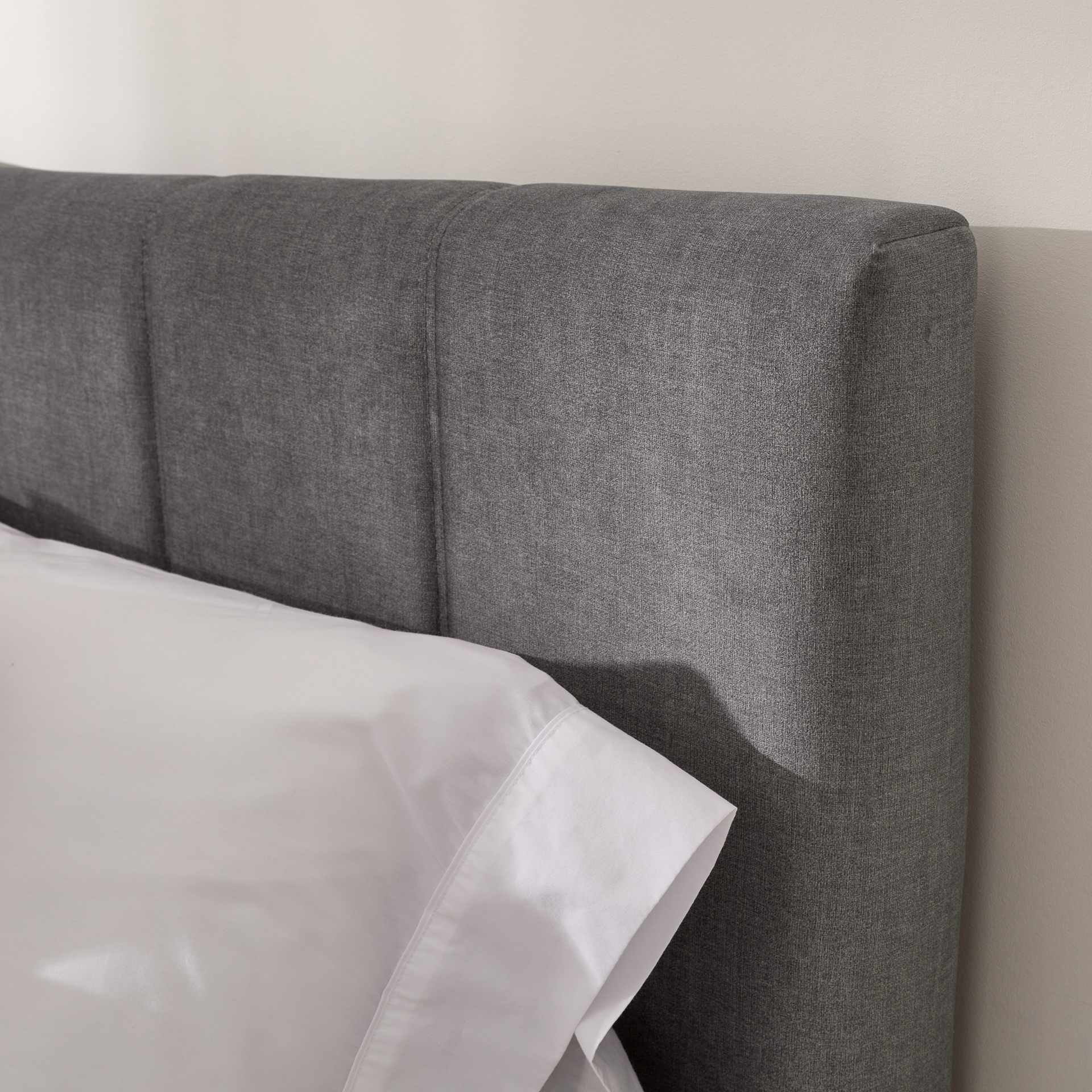 This double-size bed with upholstered headboard and sides will give you hours of uninterrupted sleep.