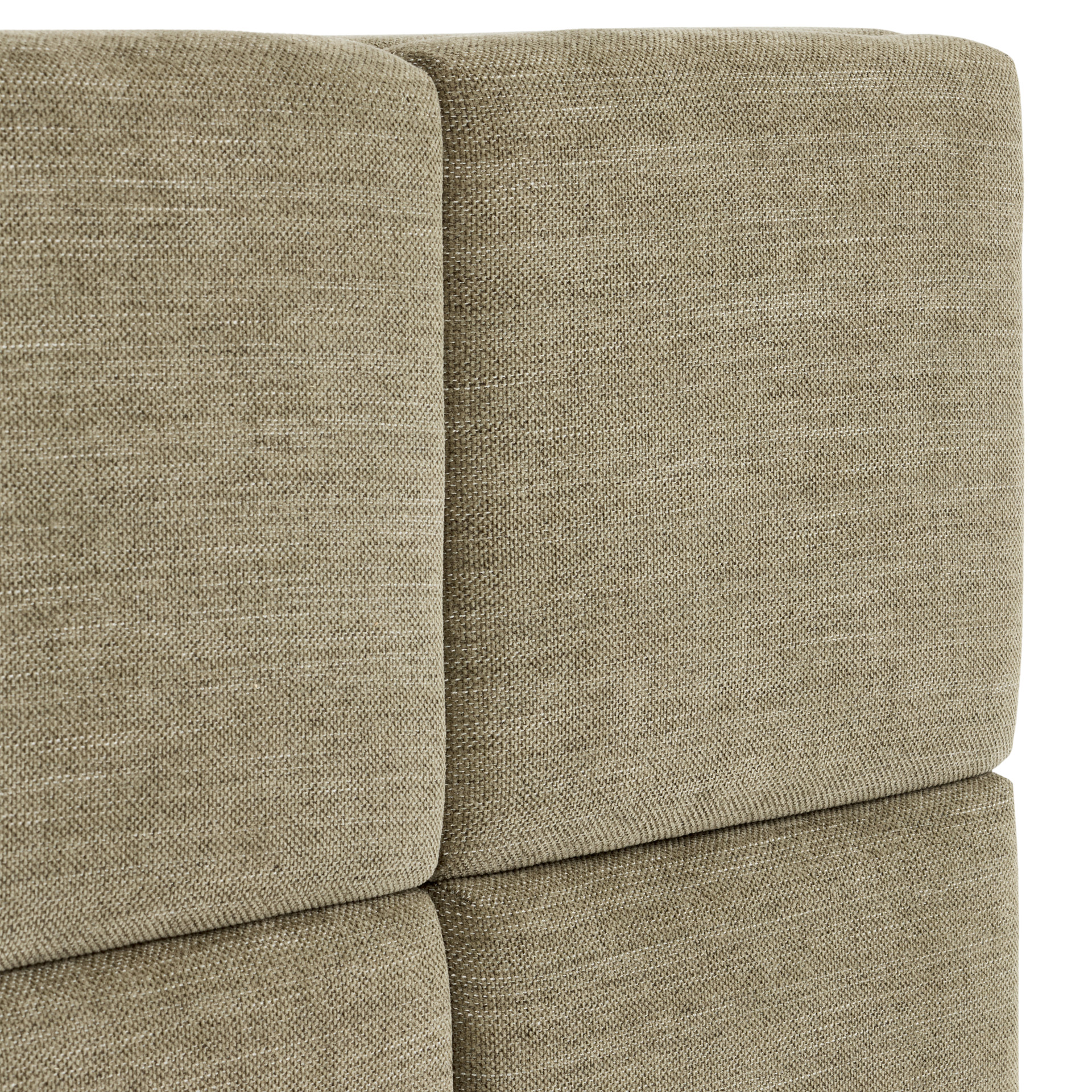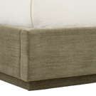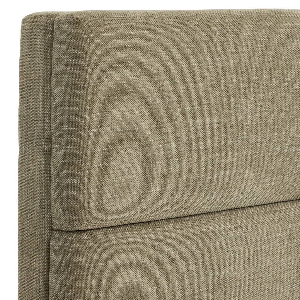 The Paola collection offers a refined and comfortable platform bed, upholstered in a textured grey-green fabric. The bed is built on a sturdy plywood frame, complemented by plush padding for enhanced comfort.