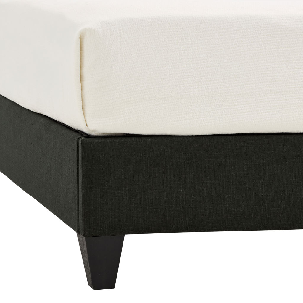 The EZ-Base foundation elegantly combines a foundation for your Queen bed mattress and a bed frame to create a contemporary bed platform. It can stand directly on the floor using attached legs or be placed on a separate bed frame for a higher profile. It can be used with or without a headboard. It is constructed of wood and upholstered in a tweed fabric made from charcoal-coloured linen.