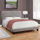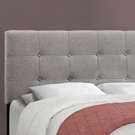 All parts needed for assembly are conveniently located inside the headboard. Bed frame required and not included (2 inch low profile recommended). Low profile bed frame in a beautiful grey linen look fabric; upholstered headboard features an elegant upholstered design.