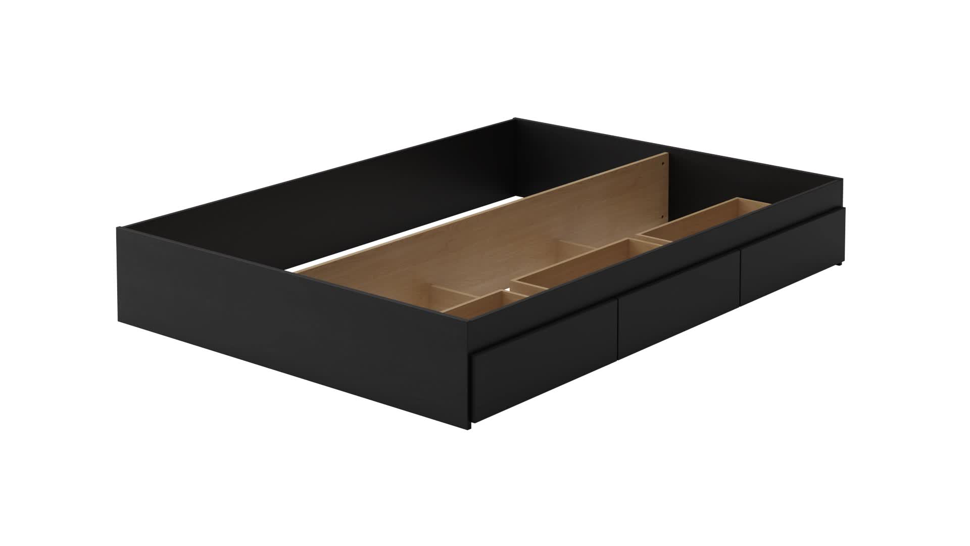 The queen storage bed includes 3 practical drawers for storing clothing, bedding, toys, or books, all mounted on sturdy metal glides. The bed is also reversible, so you can choose whether the drawers are positioned on the left or right side of the bed.