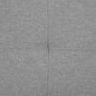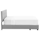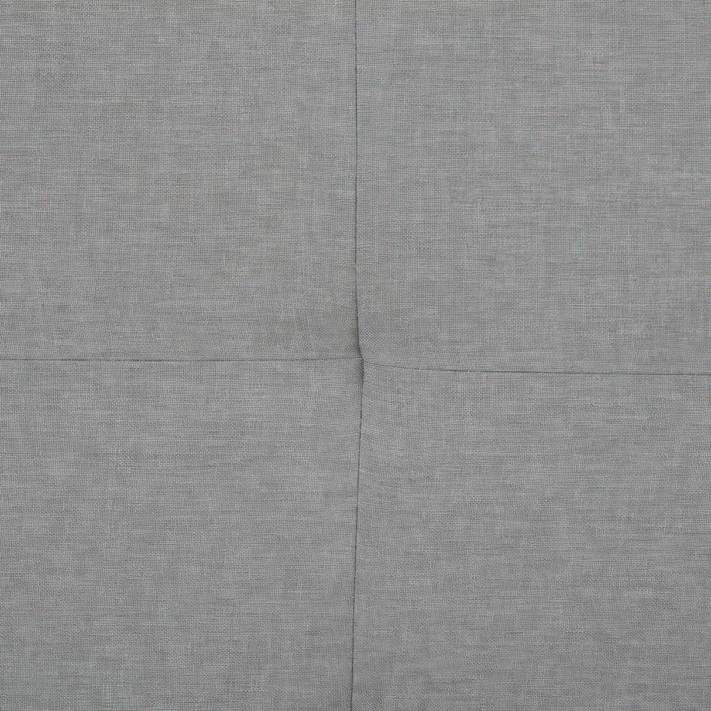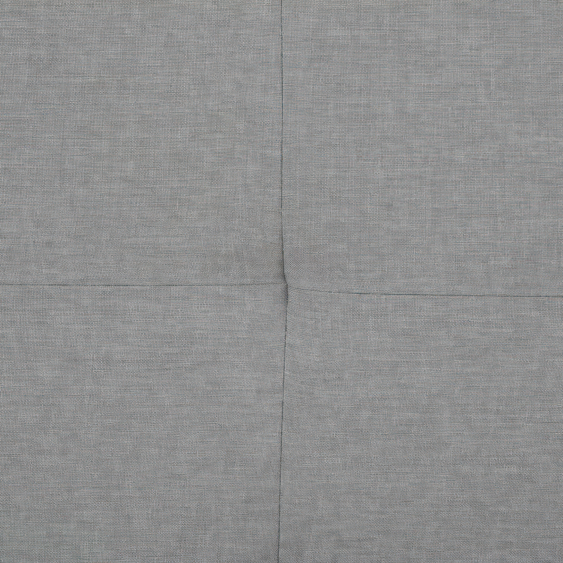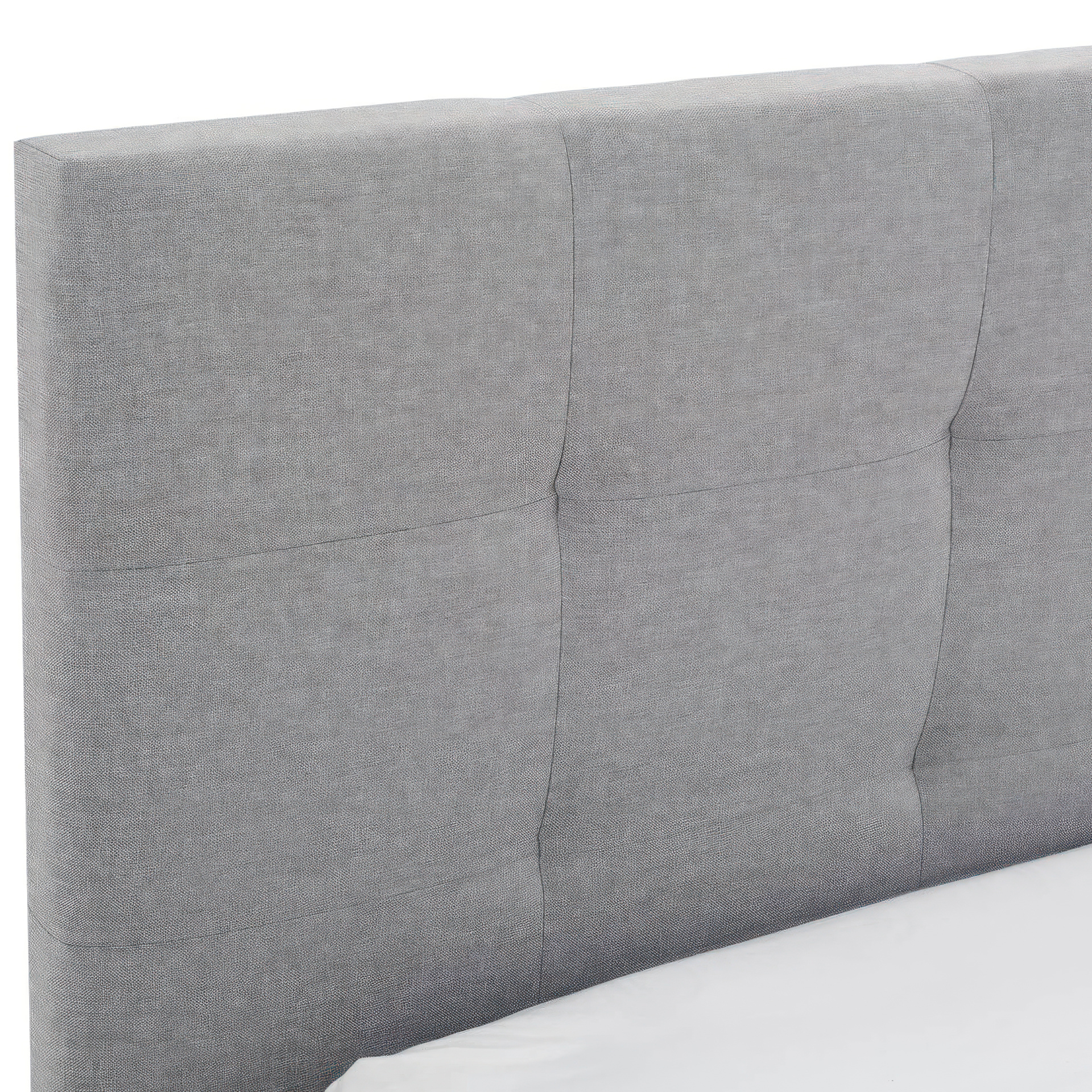 • Upholstered in grey linen-look fabric with a tufted headboard