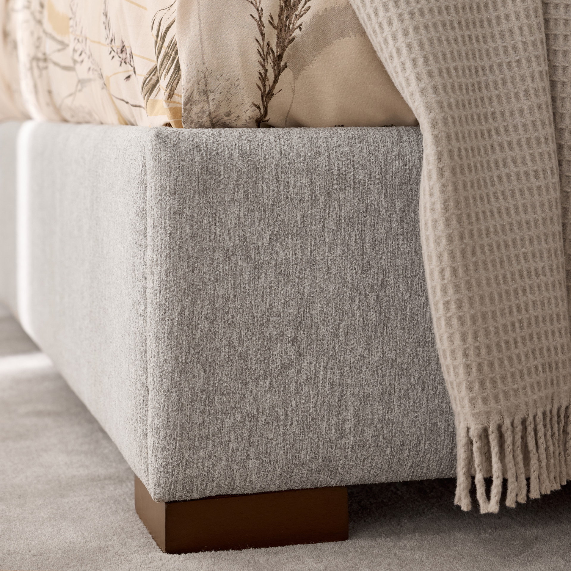 This queen-size bed with upholstered headboard and sides will give you hours of undreamed-of sleep. Take advantage of the padded headboard for enhanced comfort when reading in bed.