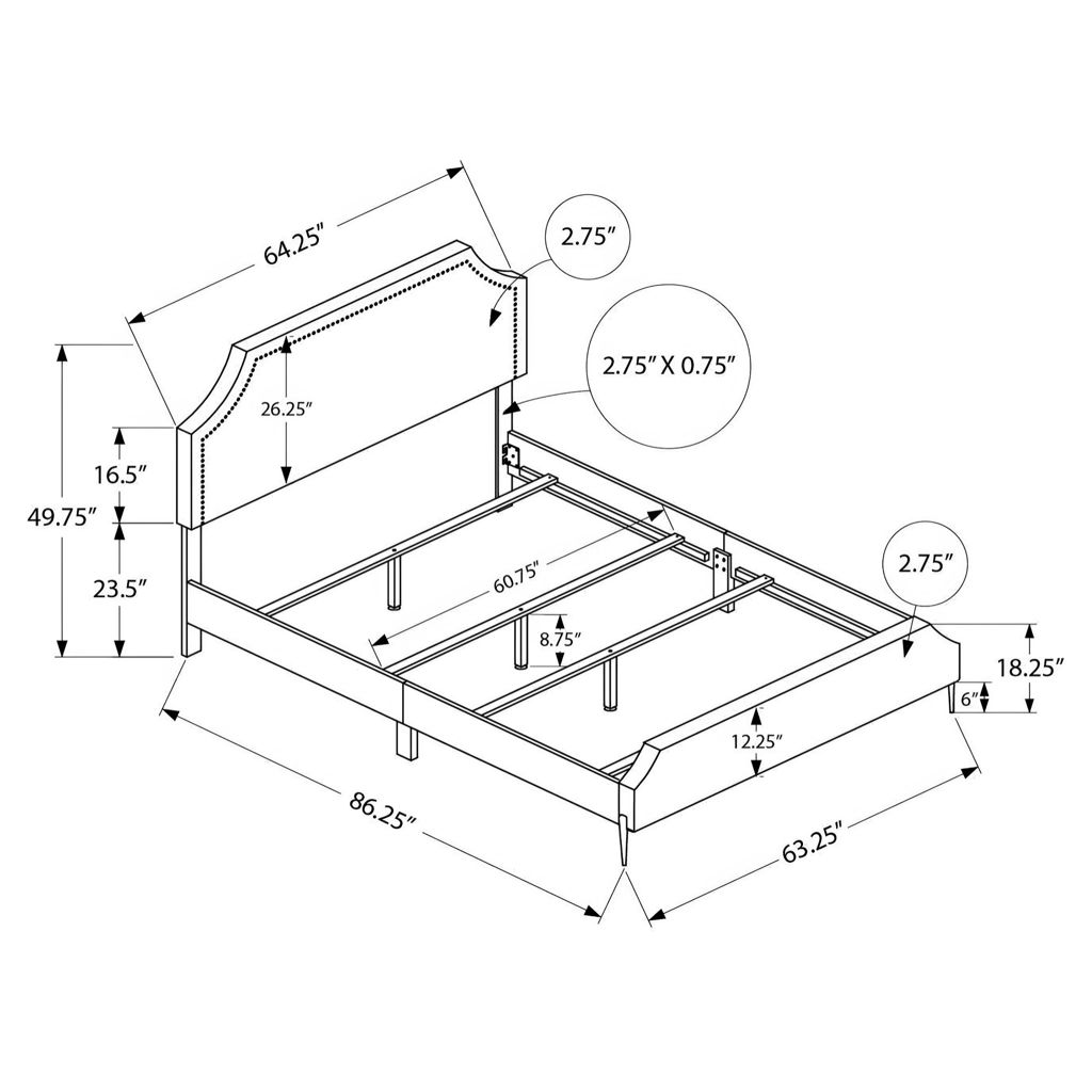 Upholstered Bed with Headboard (Queen) Monarch Specialties I 6036Q