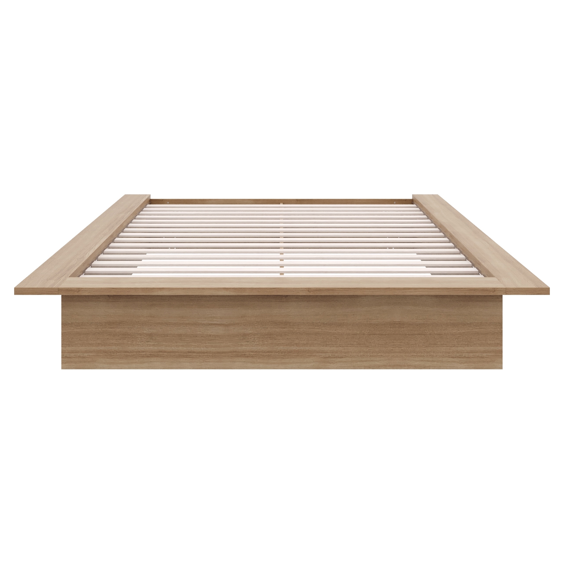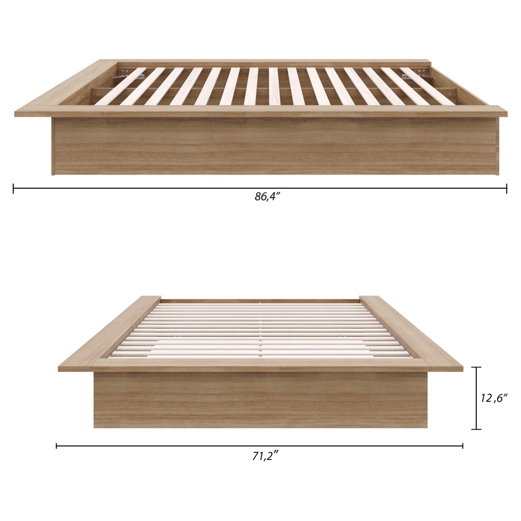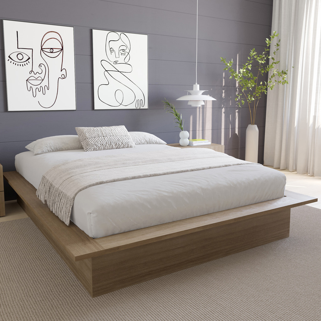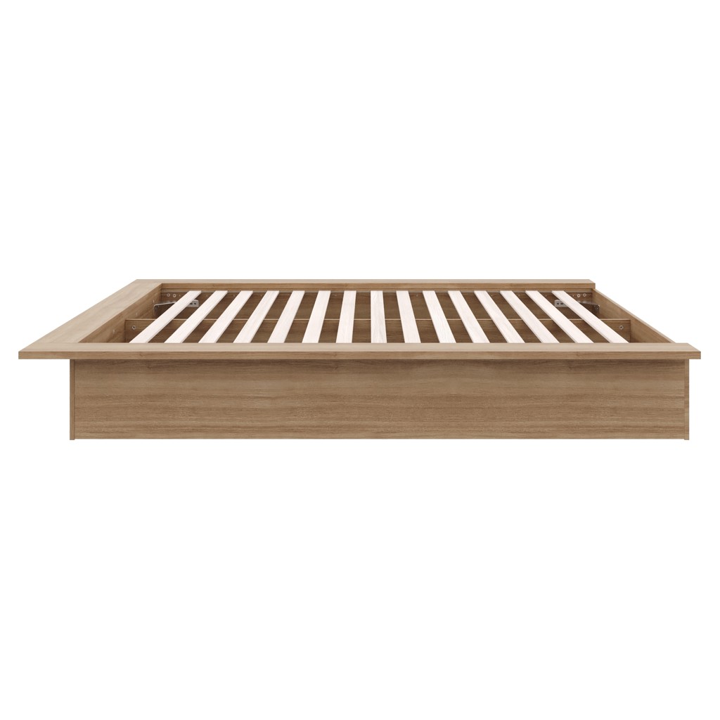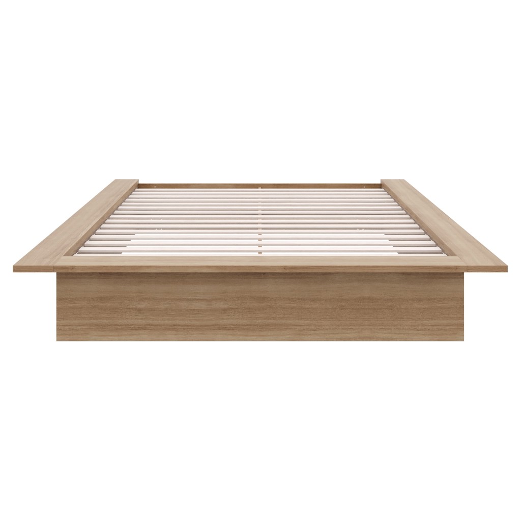 Enhance your bedroom with this sleek and elegant Brown Oak platform bed, expertly crafted from high-quality engineered wood.