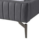 The deep channel tufting adds depth and texture to the overall design, while the sleek black metal legs elevate its character and charm to new heights.