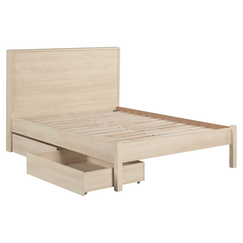 This complete bed with headboard and two storage drawers on casters perfectly combines style and functionality. Its design without the need for a box spring and its clean lines make it ideal for a contemporary decor with simplicity.