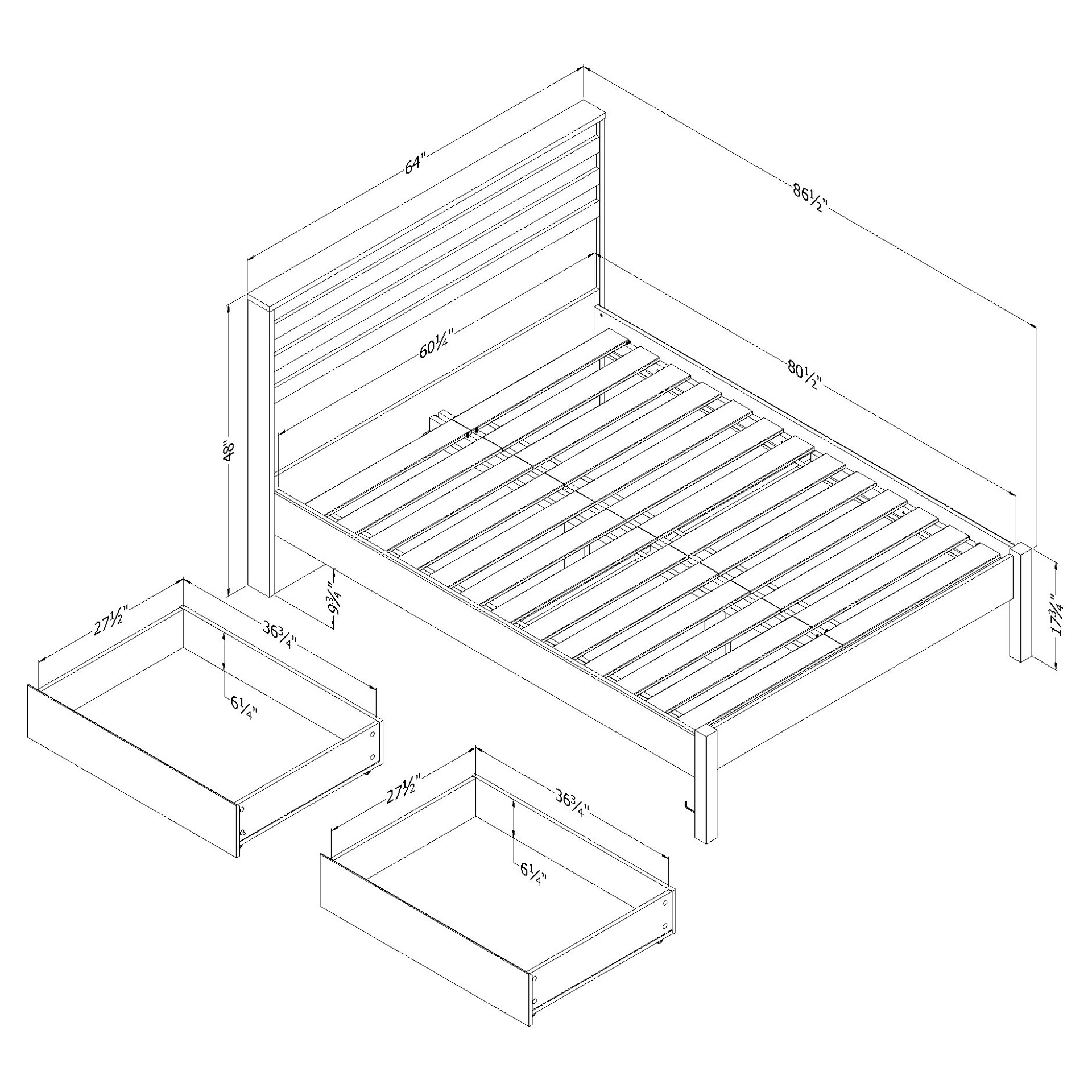 5-YEAR LIMITED WARRANTY: South Shore is proud to stand behind this complete bed with headboard and 2 storage drawers with an exclusive 5-year limited warranty. Shop with confidence knowing your purchase is always covered.