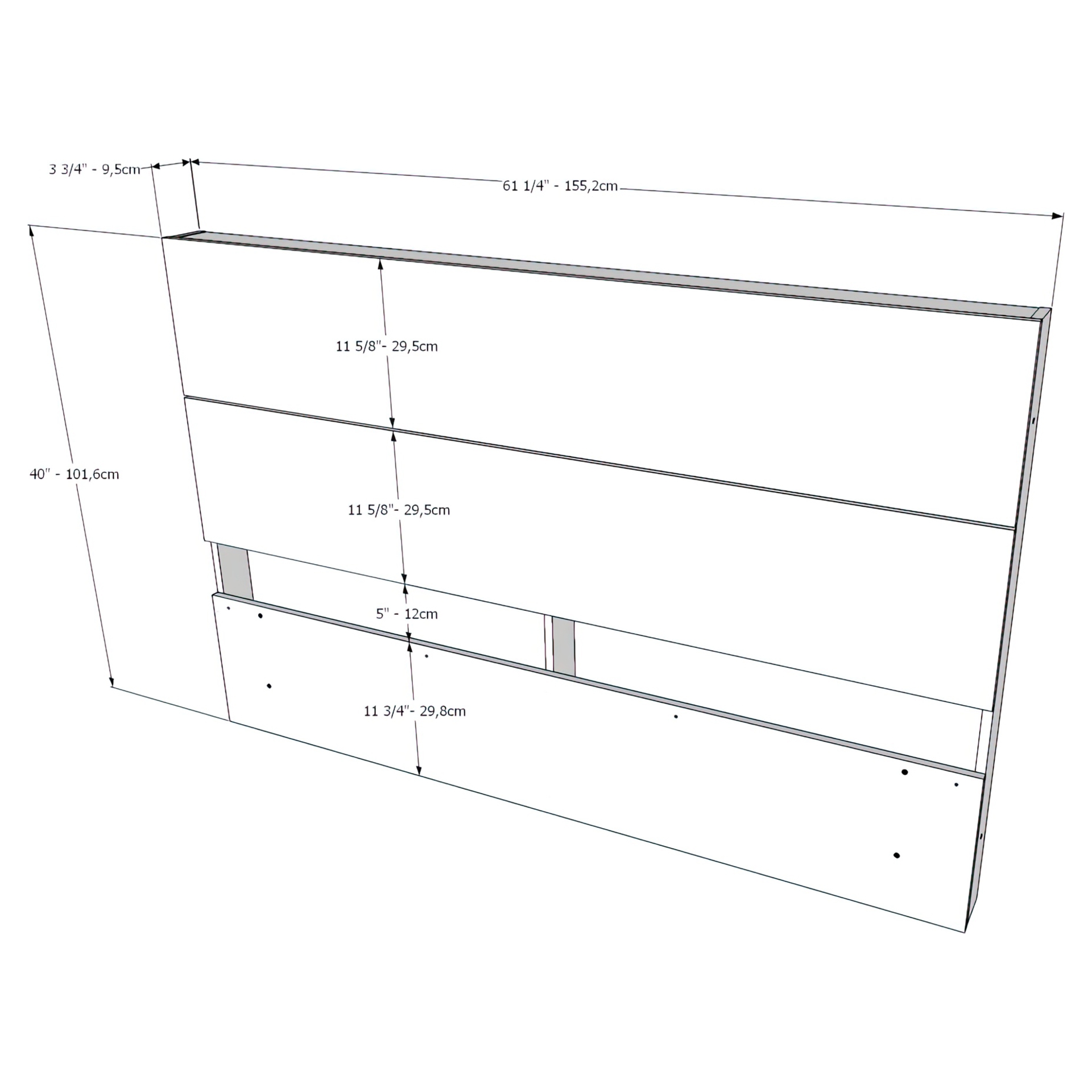 • Headboard (Queen) : 61 1/4 X 3 3/4 X 40