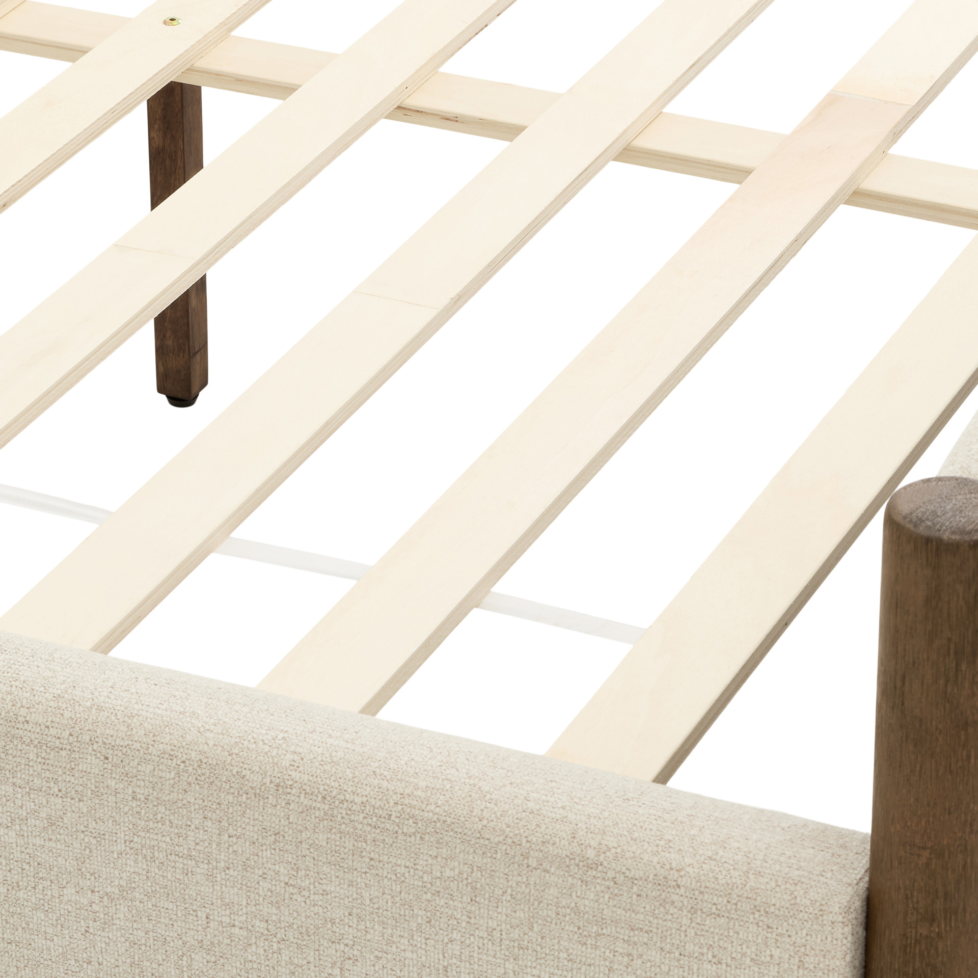This queen-size bed with padded headboard and sides will give you hours of undreamed-of sleep.