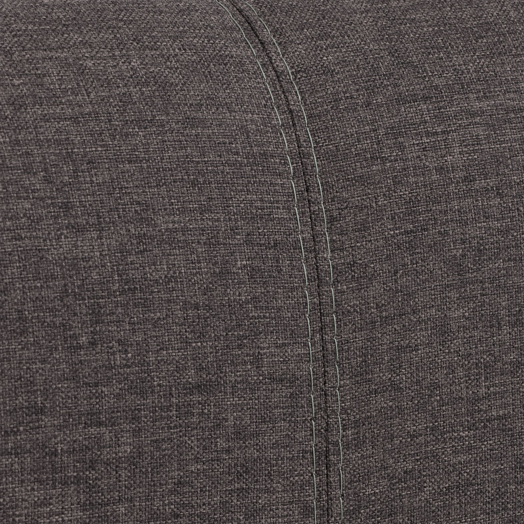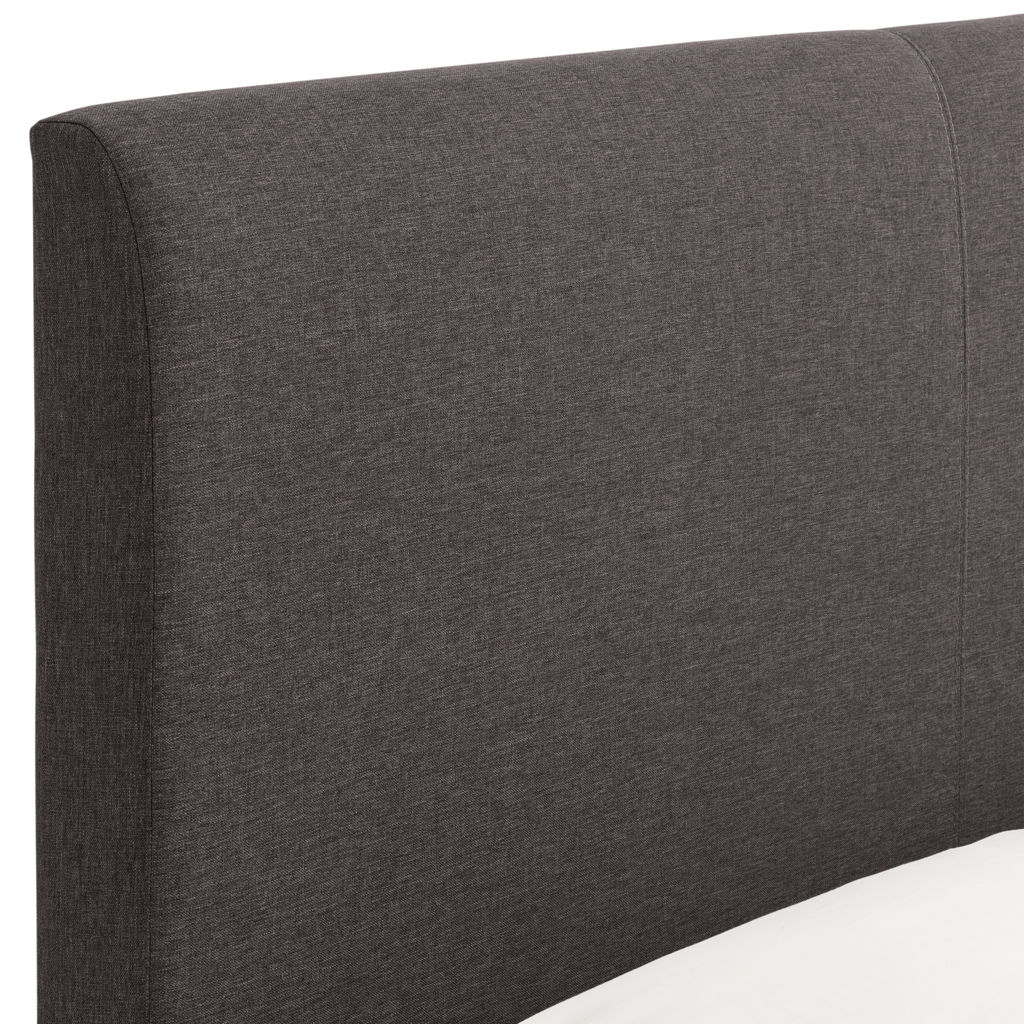 This bed's minimalist design features a high headboard in dark gray fabric, offering a modern, sophisticated look to your bedroom. The soft fabric upholstery creates a warm, welcoming ambience, ideal for relaxing moments.