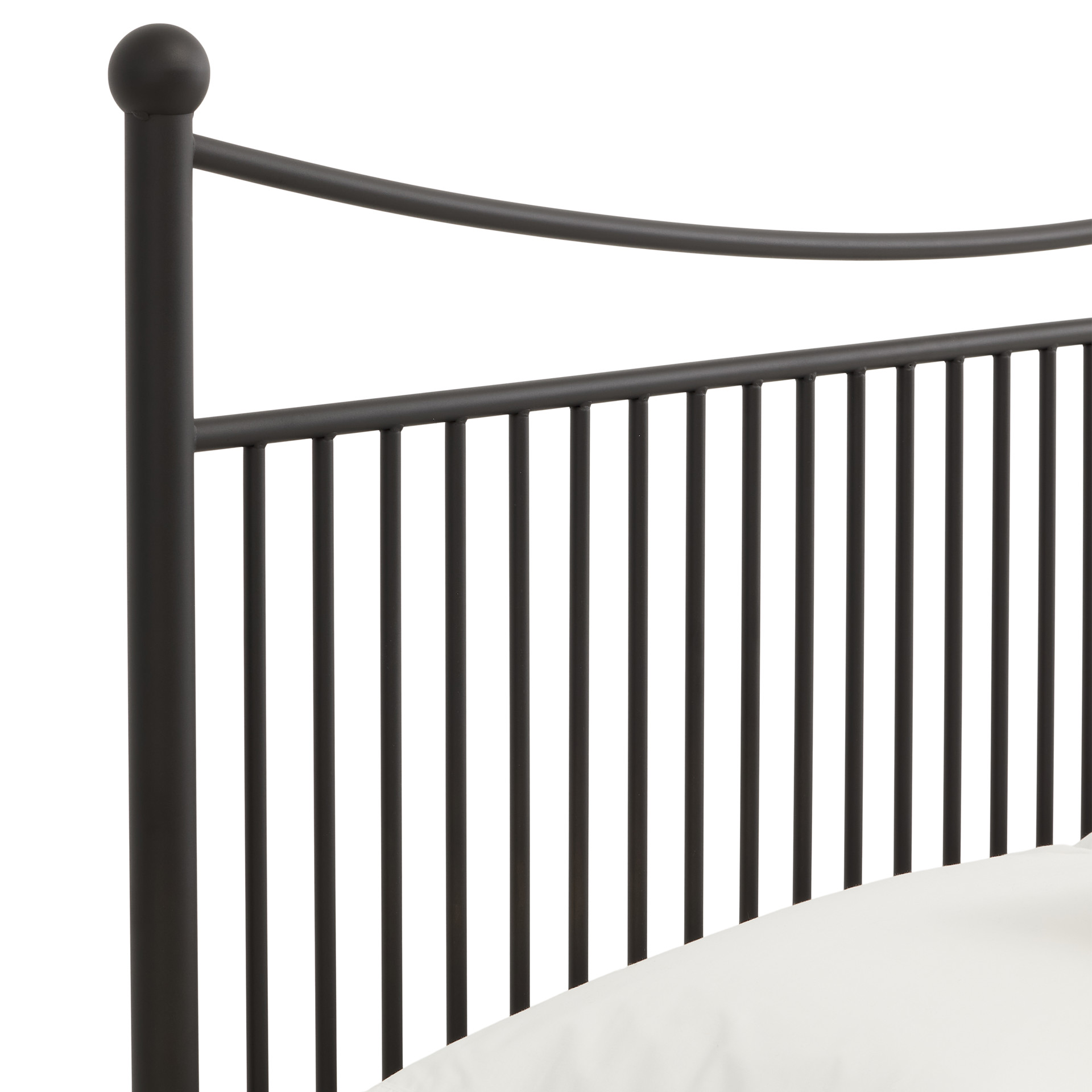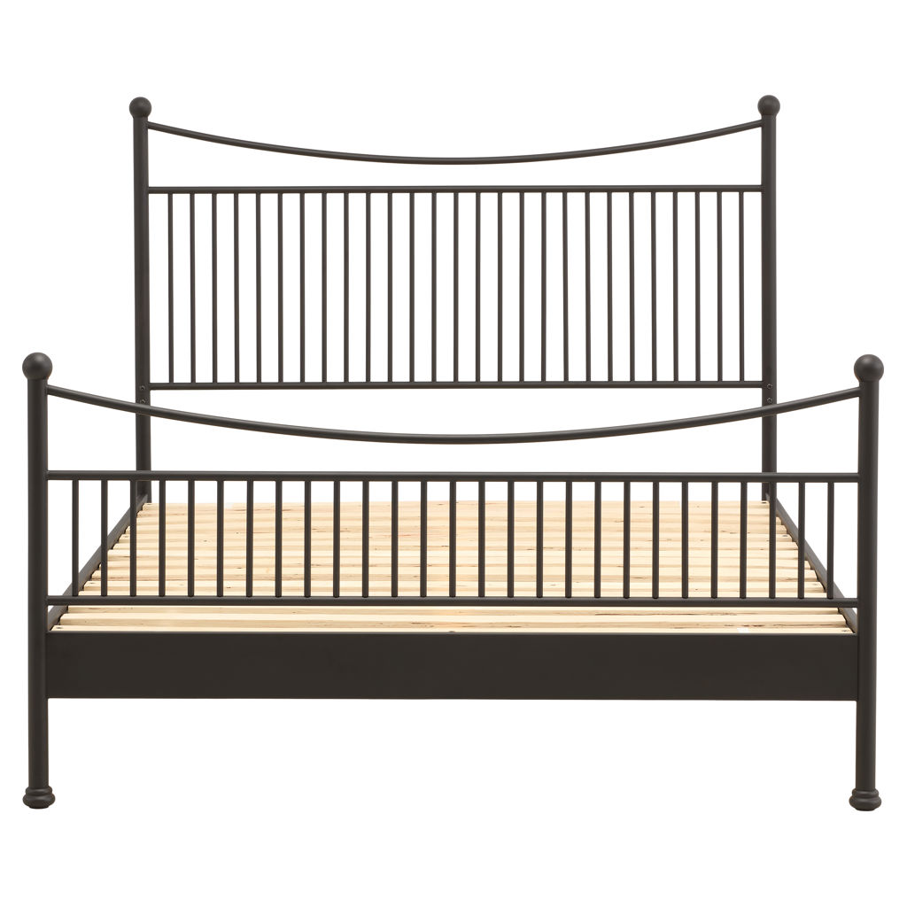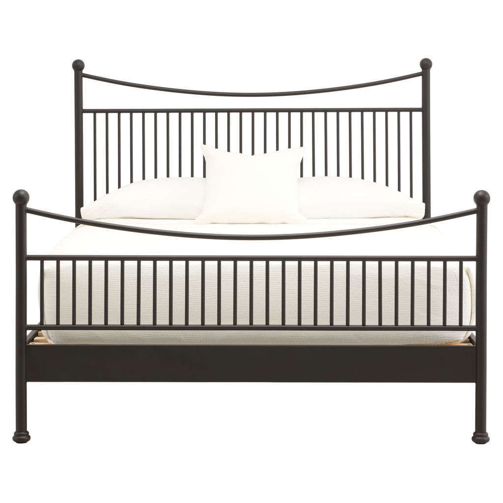 This metal bed features a light, well-balanced silhouette that adds character to the bedroom without overwhelming the space. Its slender structure, defined by vertical bars and gently curved lines, creates a look that is both sturdy and elegant. Designed to provide excellent mattress support, it combines durability with everyday comfort while blending easily into a variety of décors.