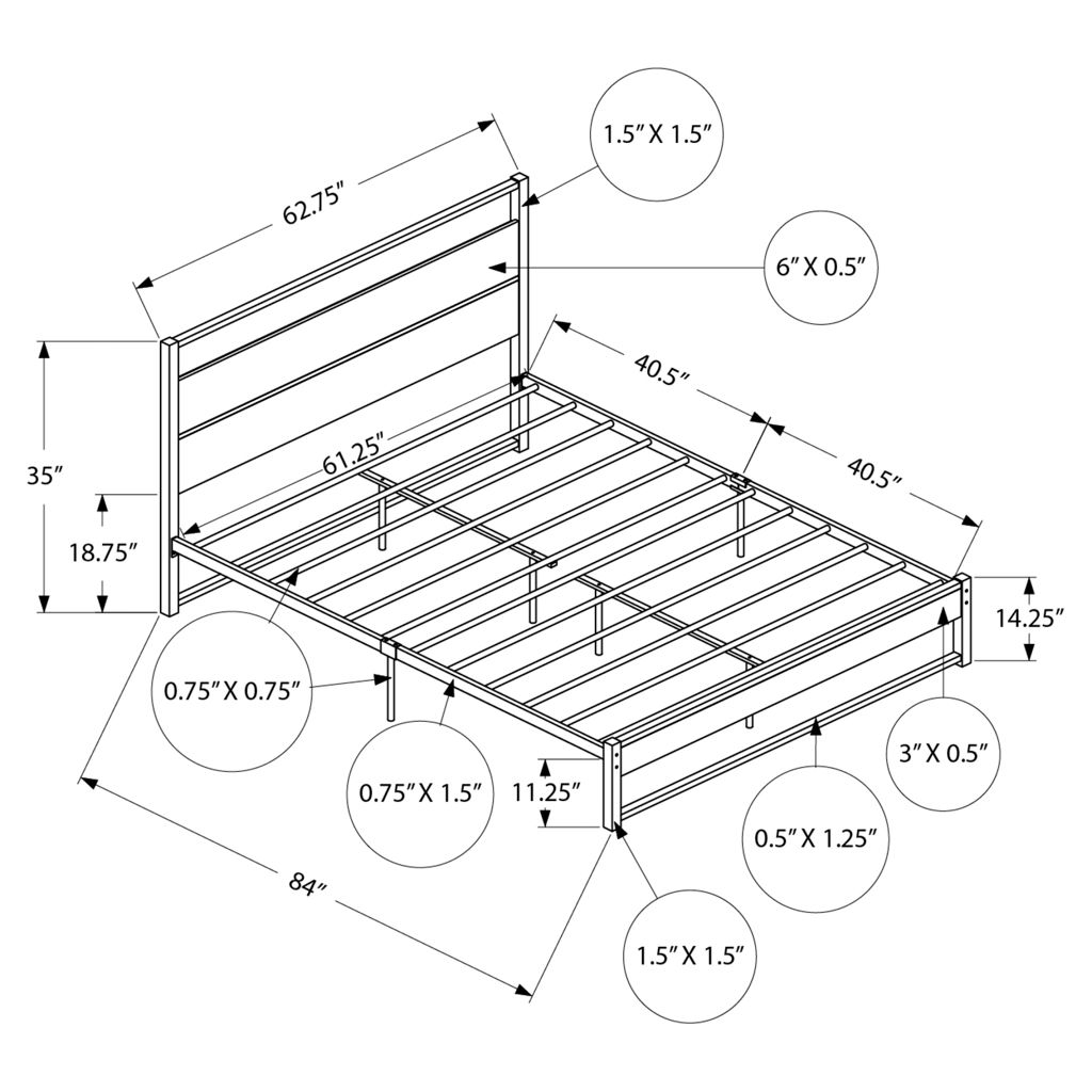 This bed frame features full metal slats along the base so there is no need for a box spring. Simply place a standard queen size mattress on top (not included) for a comfortable and supportive bed setup.