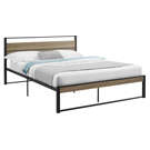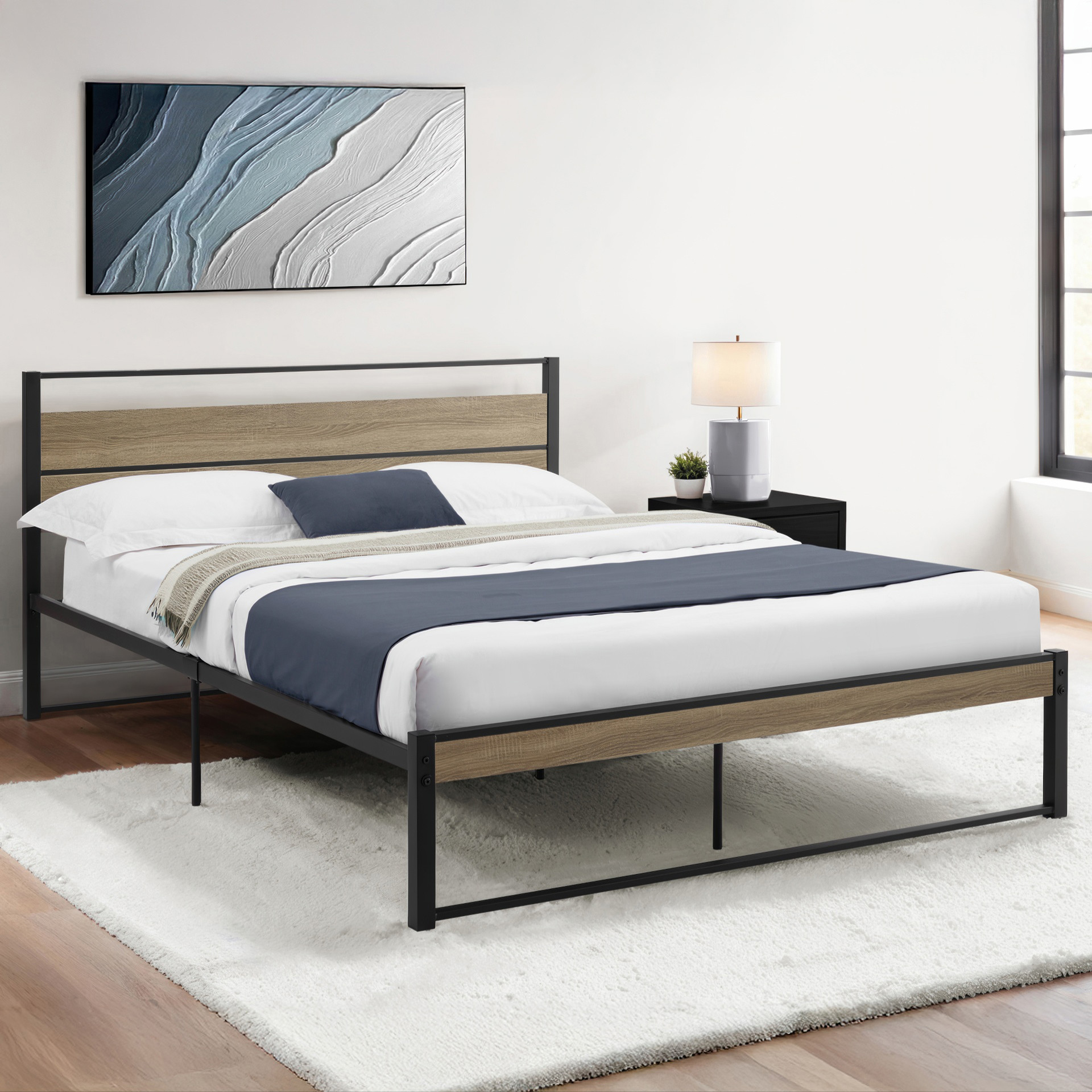 Create a contemporary sanctuary in your bedroom with this sleek and stylish queen size, black metal platform bed complemented with smooth wood-look, dark taupe laminate paneling for a sophisticated contrast.