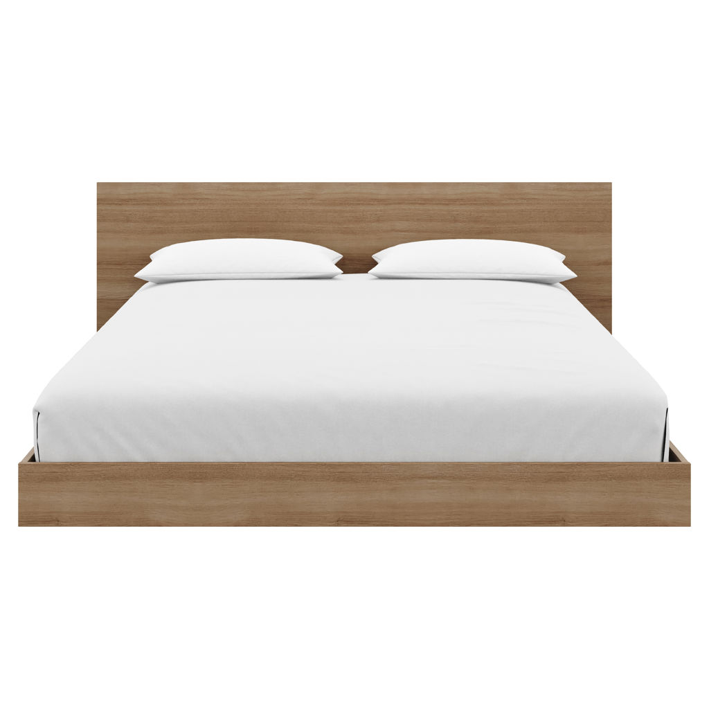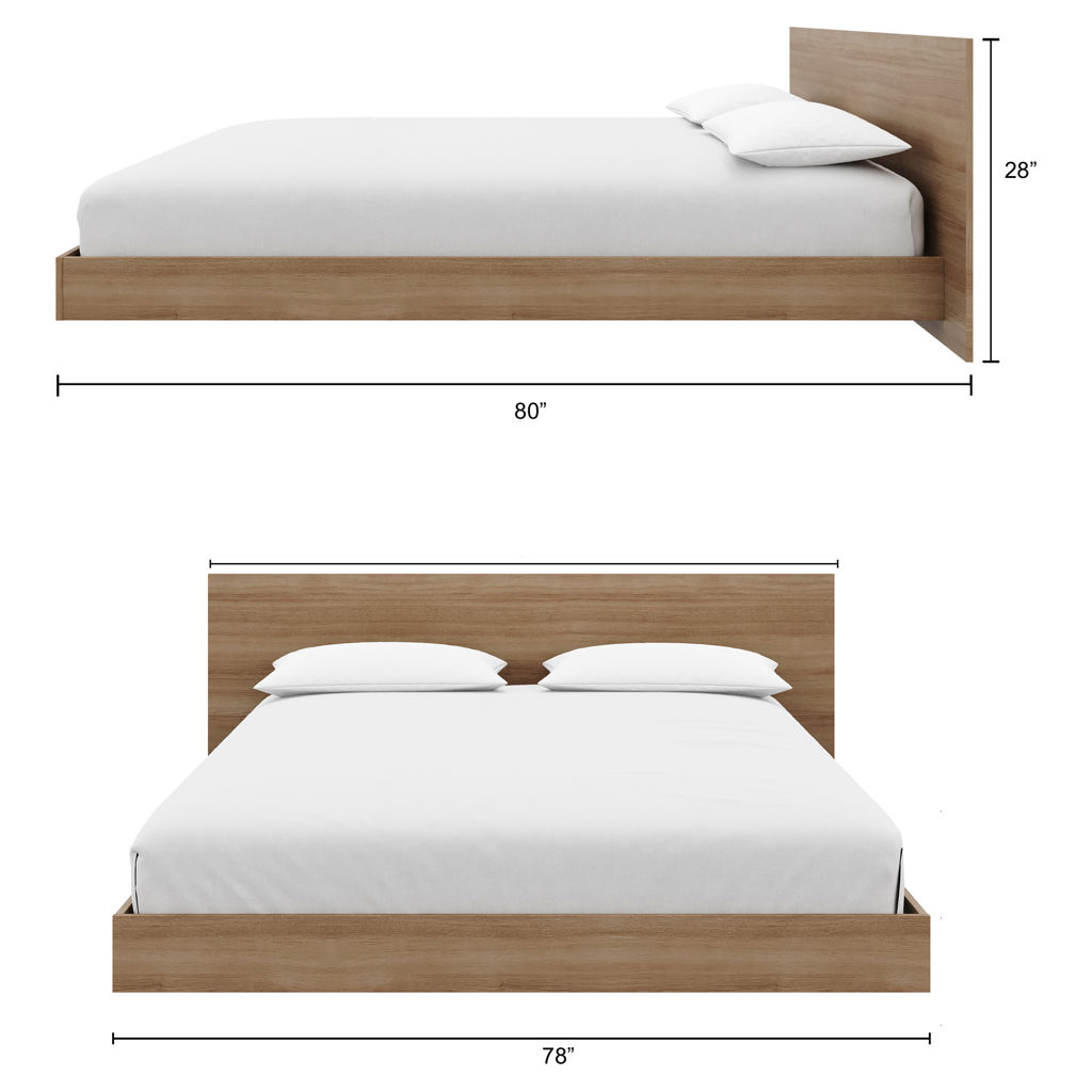 Satori Brown Oak Platform Bed with Headboard - Queen