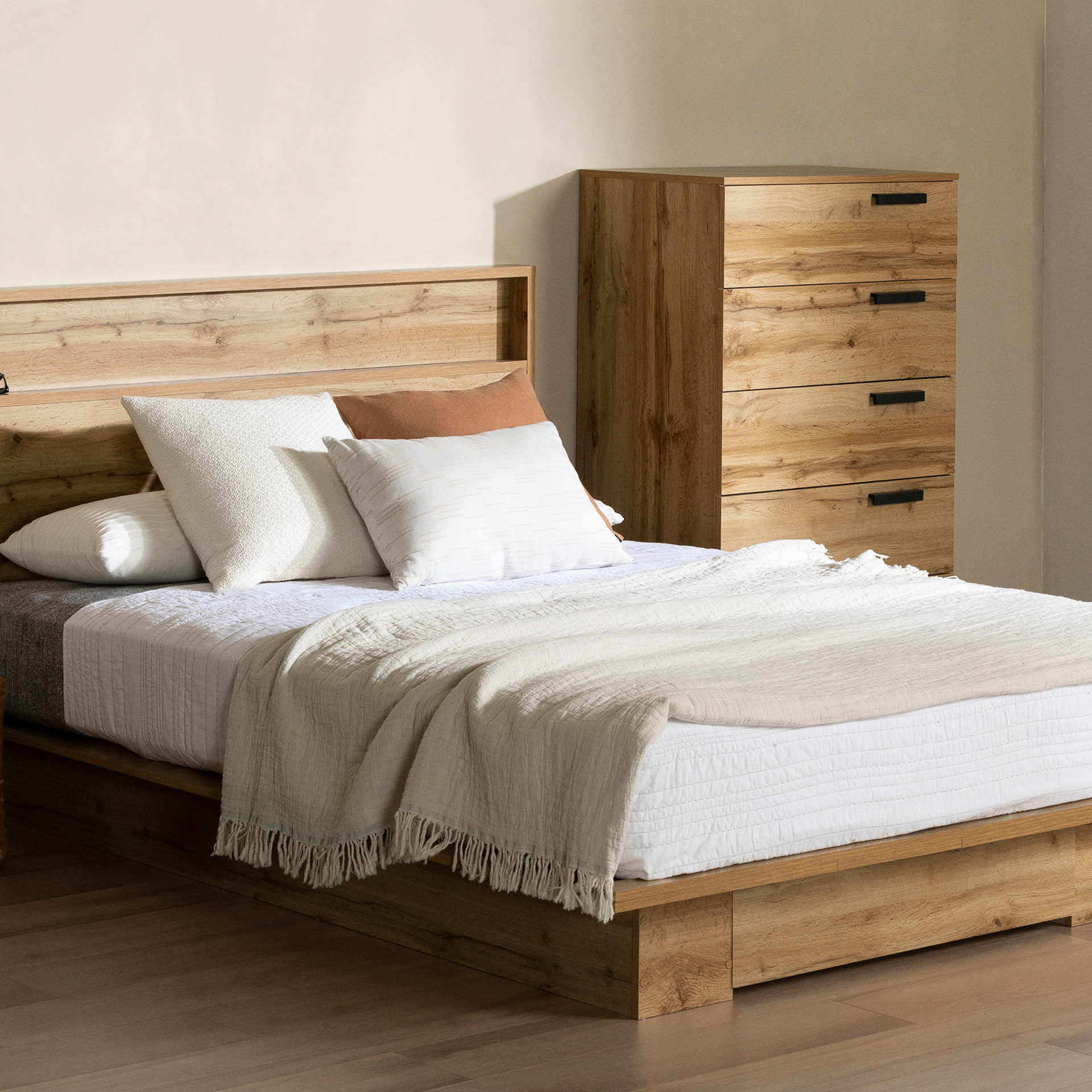 Crafted from durable materials, this platform bed provides excellent support without the need for a box spring. Its large drawer, mounted on full-extension slides, allows for smooth and easy access to your belongings.