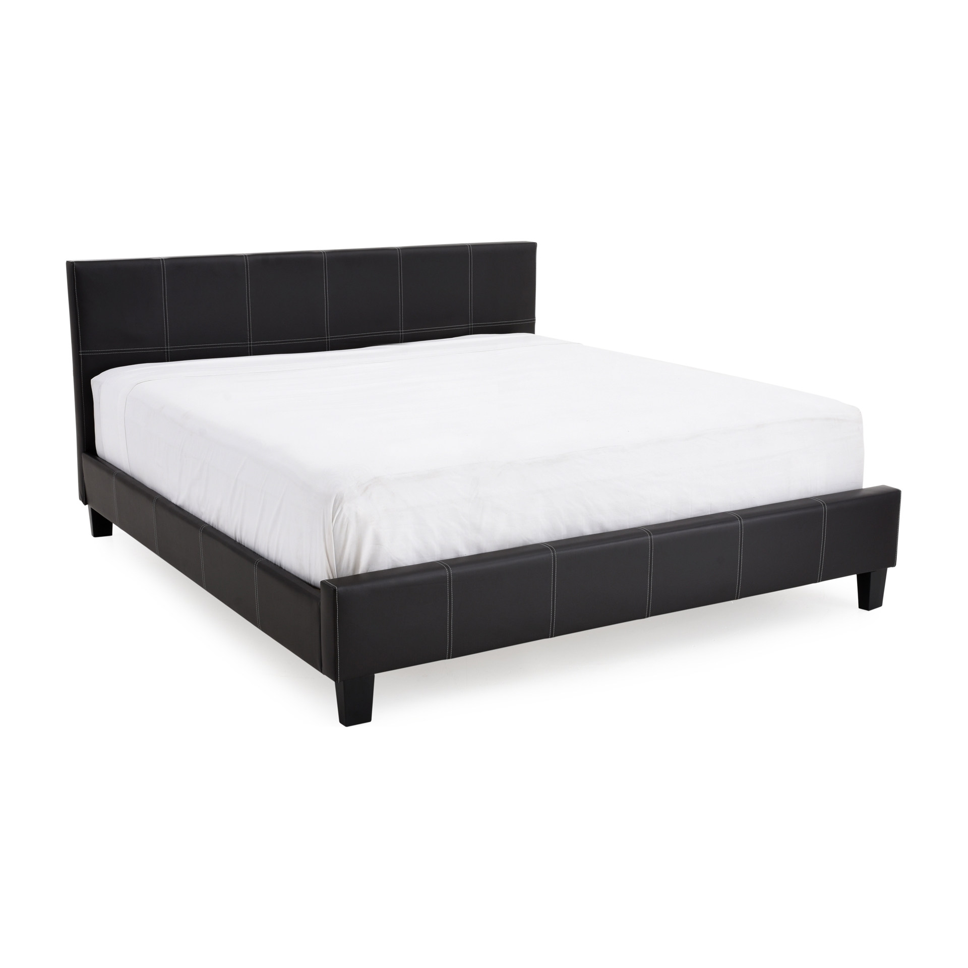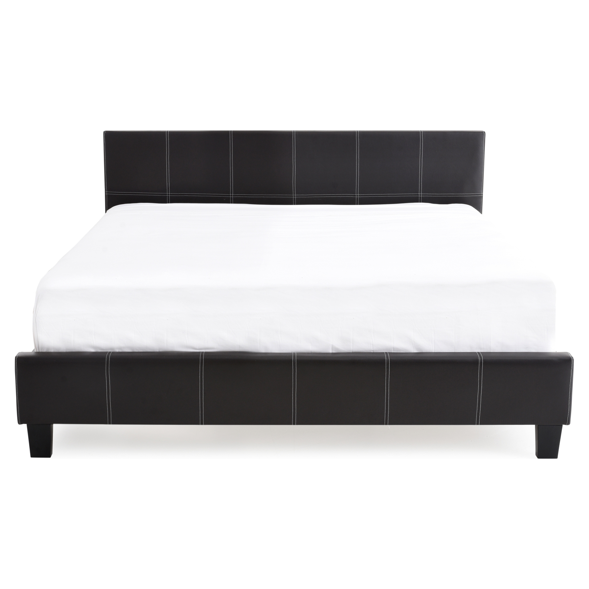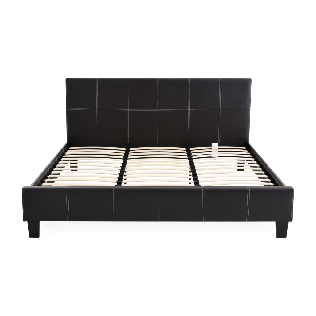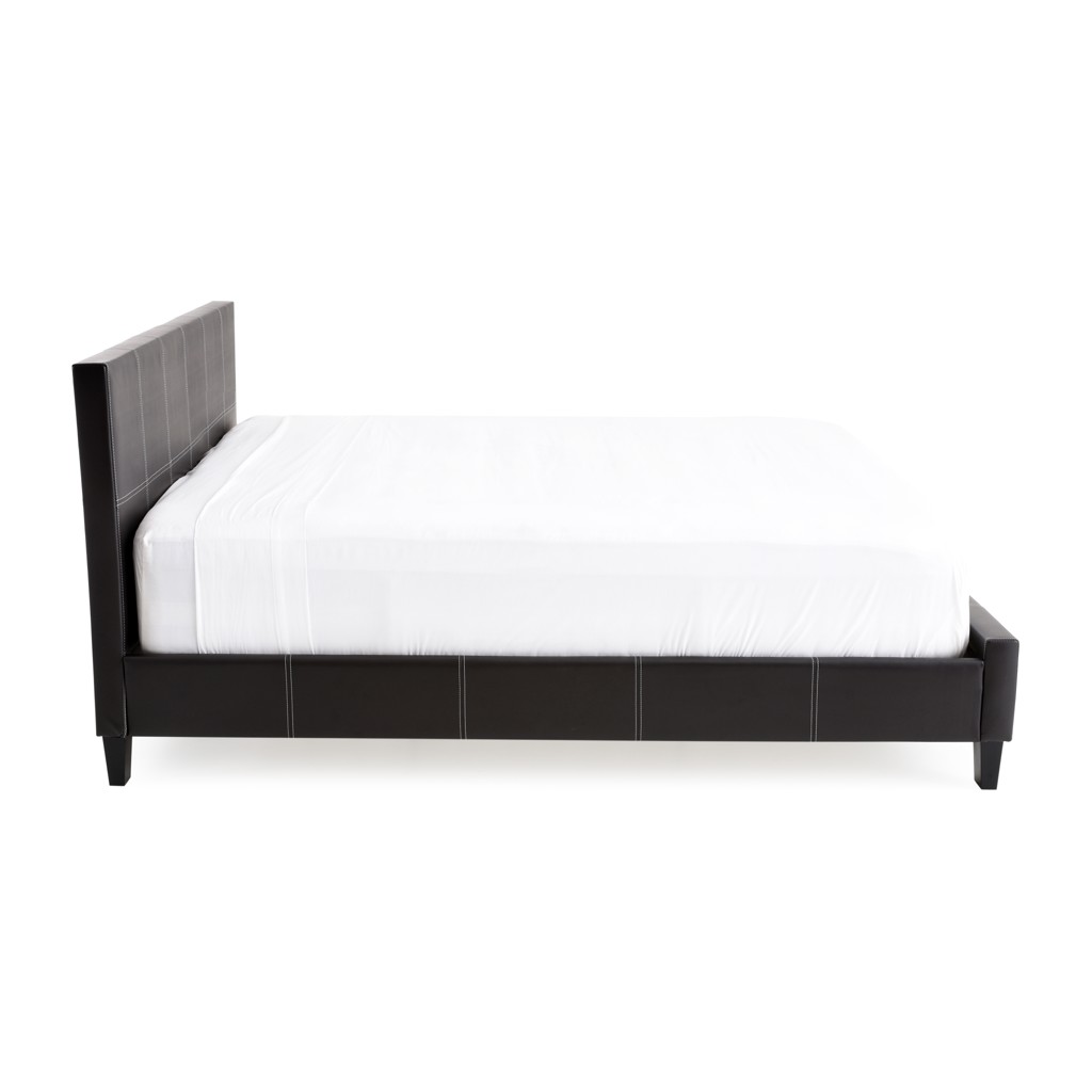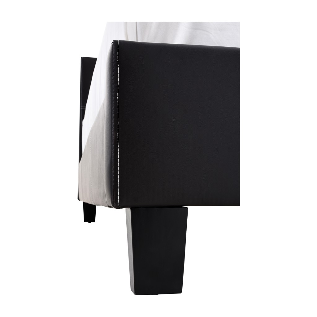 The headboard of this platform bed stands out with elegant baseball-style stitched upholstery, which extends seamlessly along the sides and footboard. This modern detail adds a distinctive touch and bold character to your bedroom, making it a true focal point.