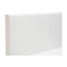 Perfectly rectangular, with clean lines, the headboard of this grey fabric bed is emblematic of a modern minimalist aesthetic, which relies on sparing decorative elements and neutral colors.