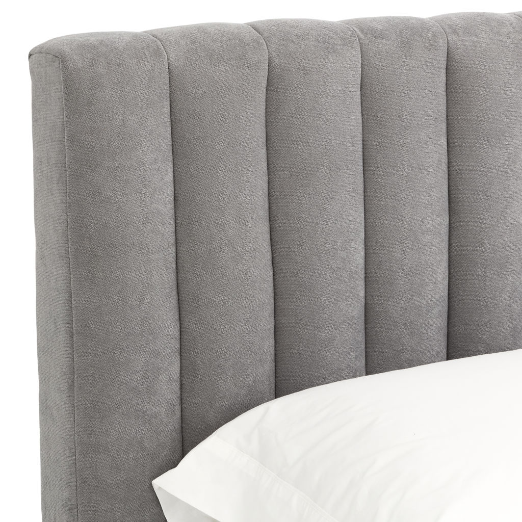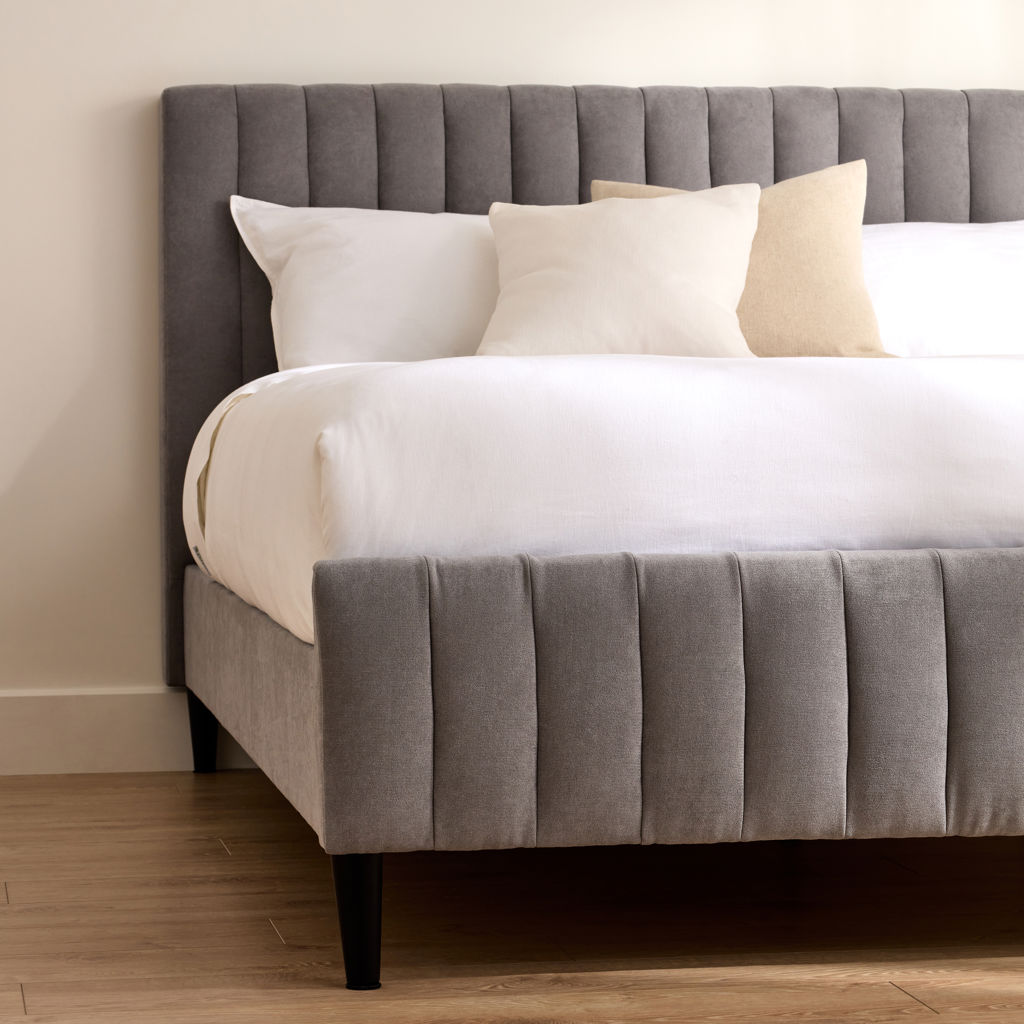 This king quilted upholstery bed with its padded headboard and sides will give you hours of uninterrupted sleep.
