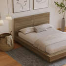 Elevate your bedroom's style with our modern headboard, featuring clean lines and minimalist aesthetics. Crafted from high-quality engineered wood, this headboard highlights the natural color variation of the wood grain, adding an organic touch to your space.