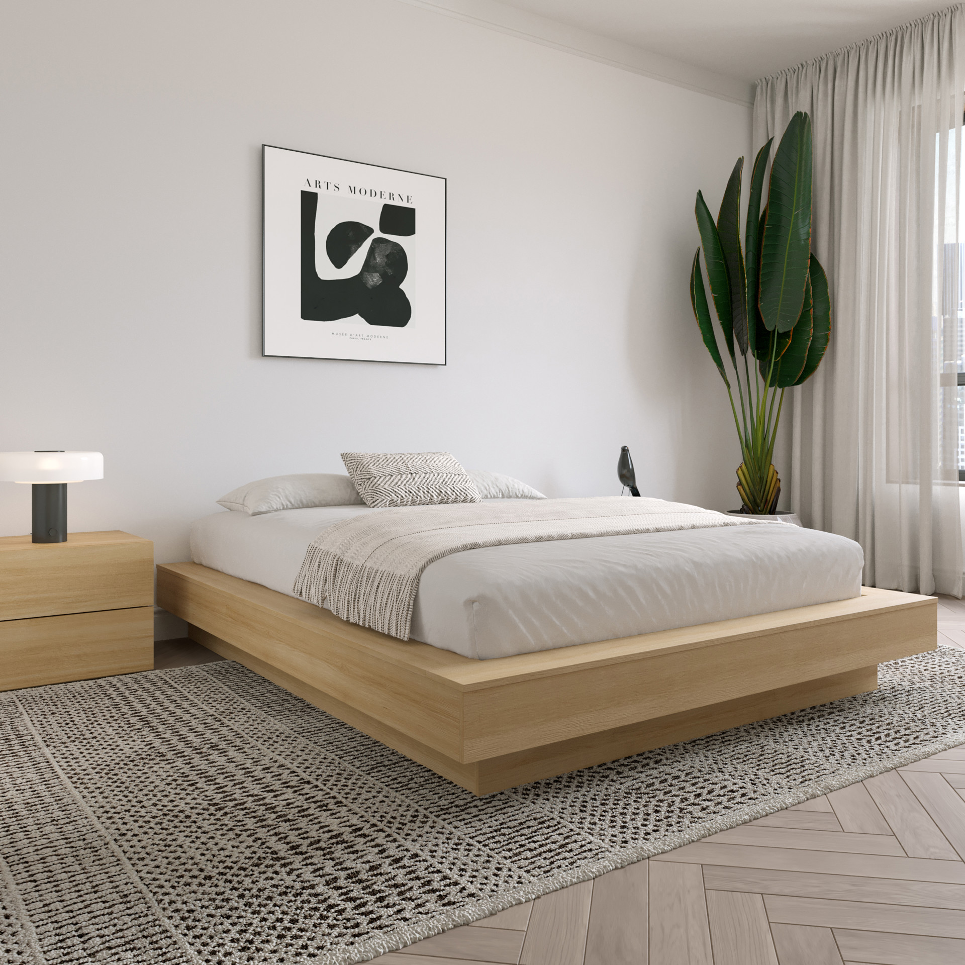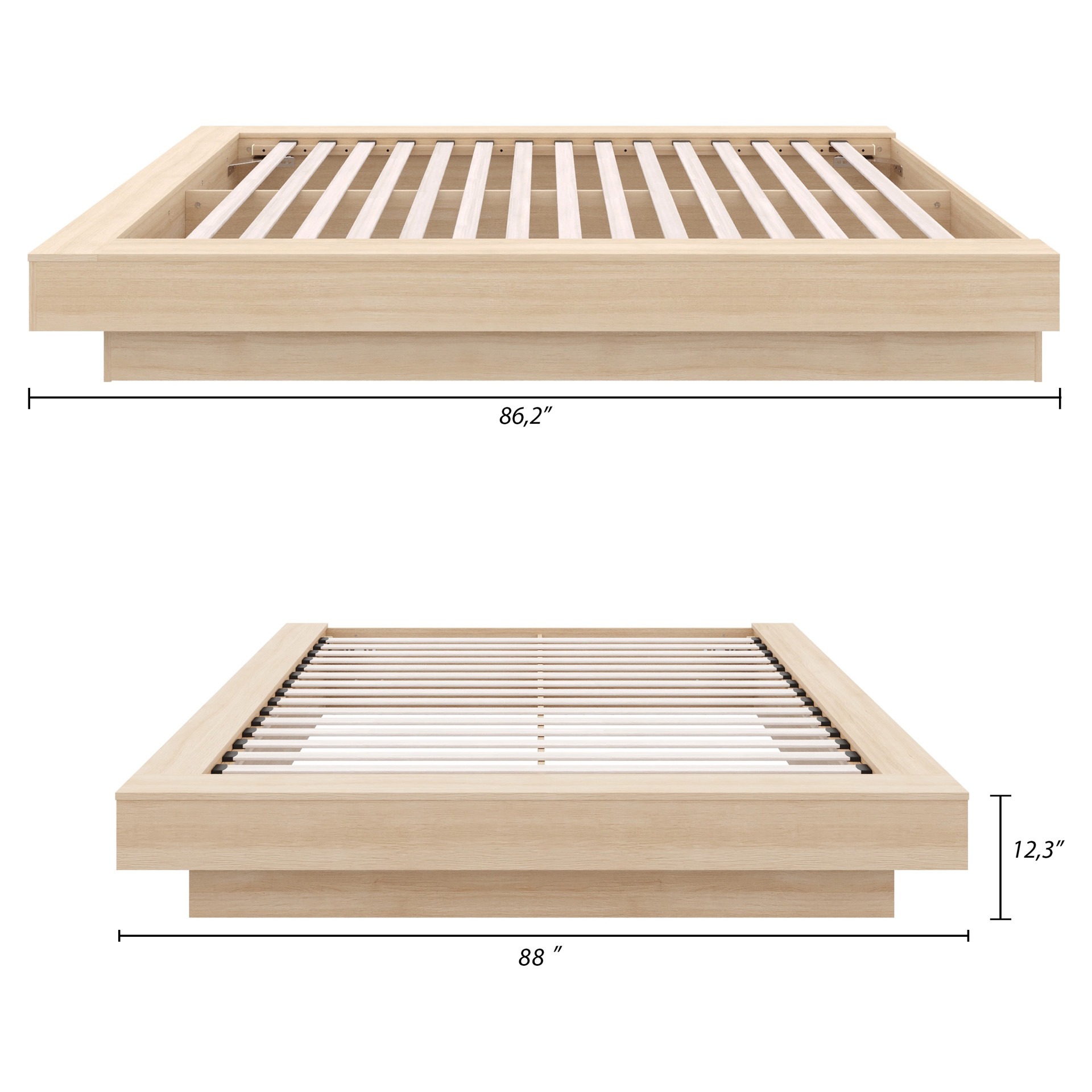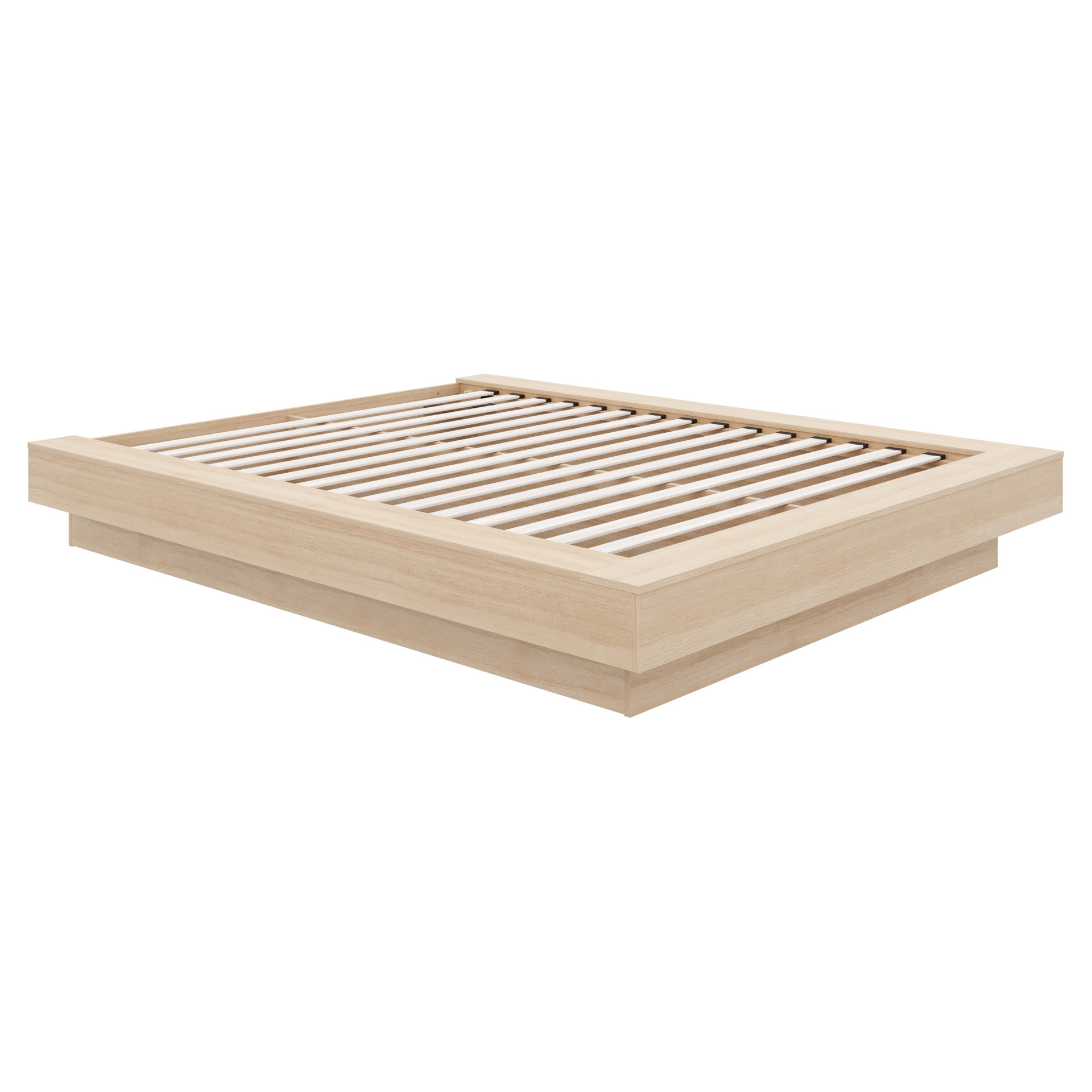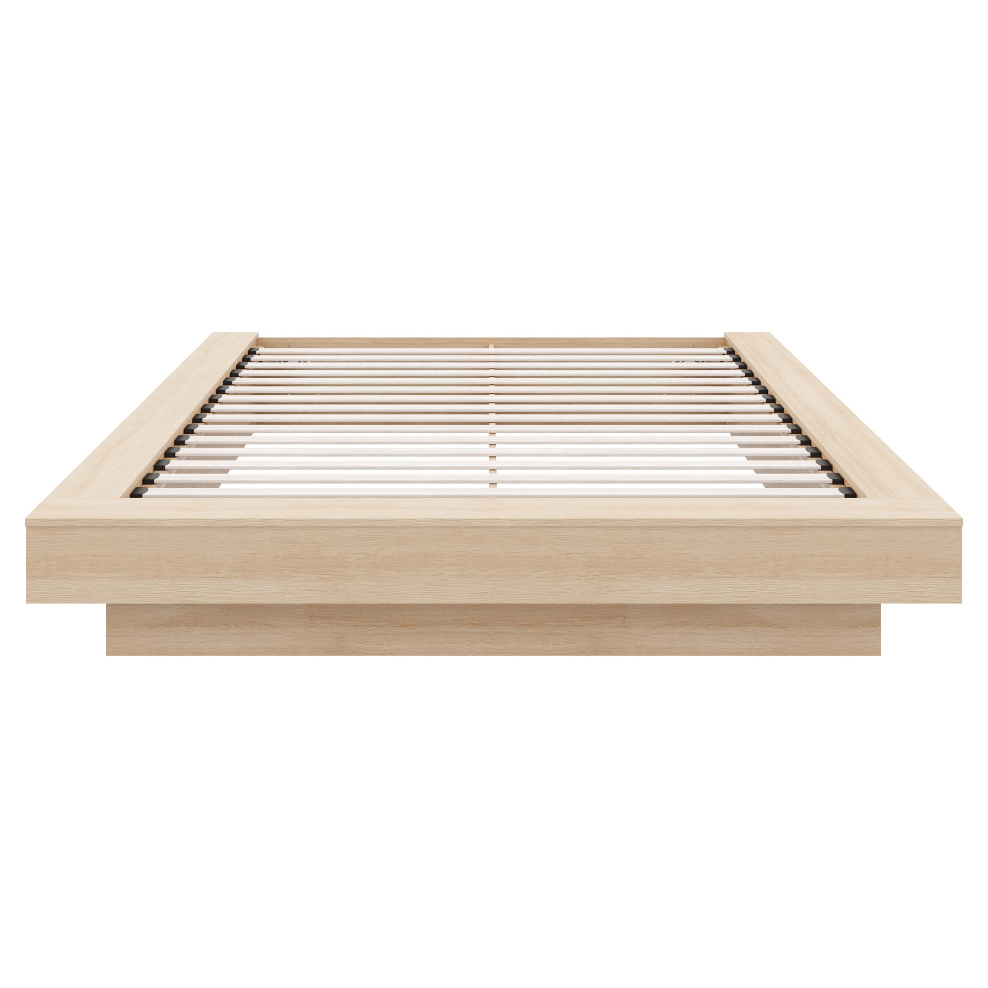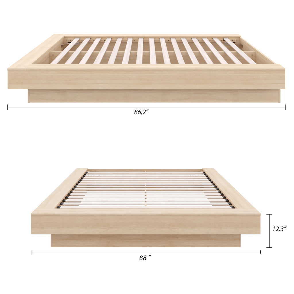 Enhance your bedroom with this sleek and elegant Natural Oak platform bed, expertly crafted from high-quality engineered wood.